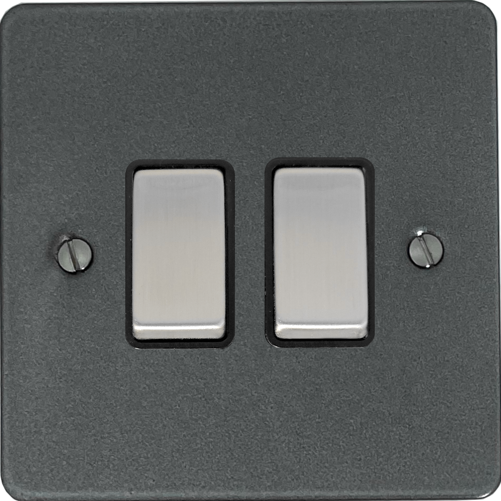 Flat Pewter Light Switch (2 Gang/Black Insert/Steel Switches) - G+H FP302