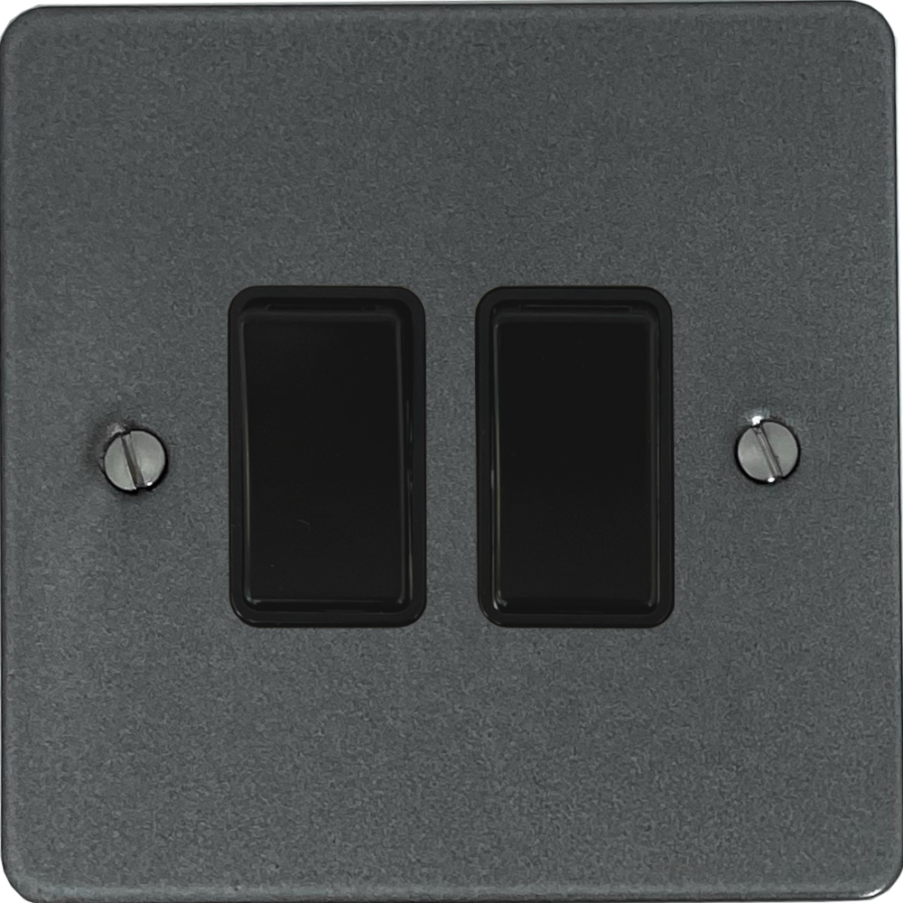 Flat Pewter Light Switch (2 Gang/Black Switches) - G+H FP2B
