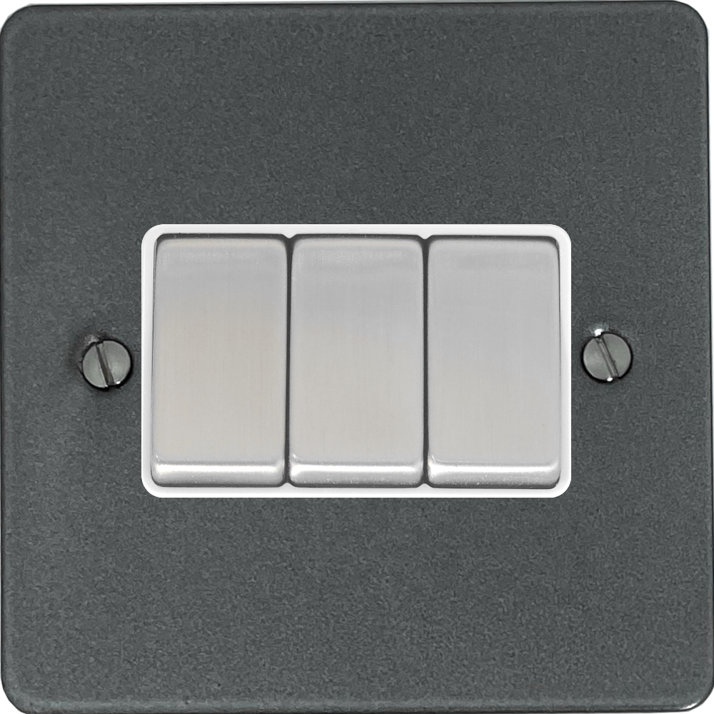 Flat Pewter Light Switch (3 Gang/White Insert/Steel Switches) - G+H FP203