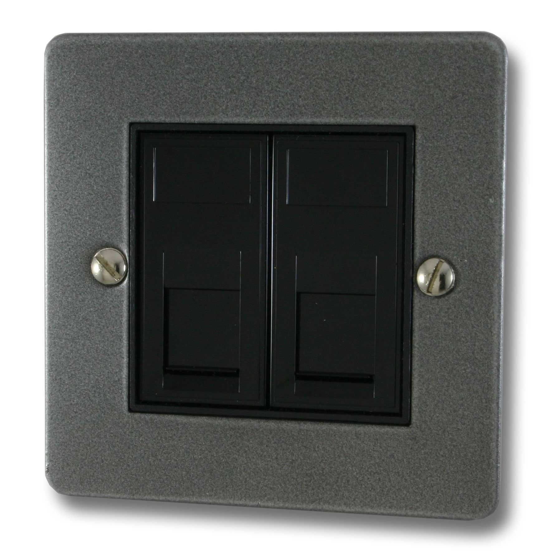Flat Pewter RJ45 Socket (2 Gang/Black Insert)