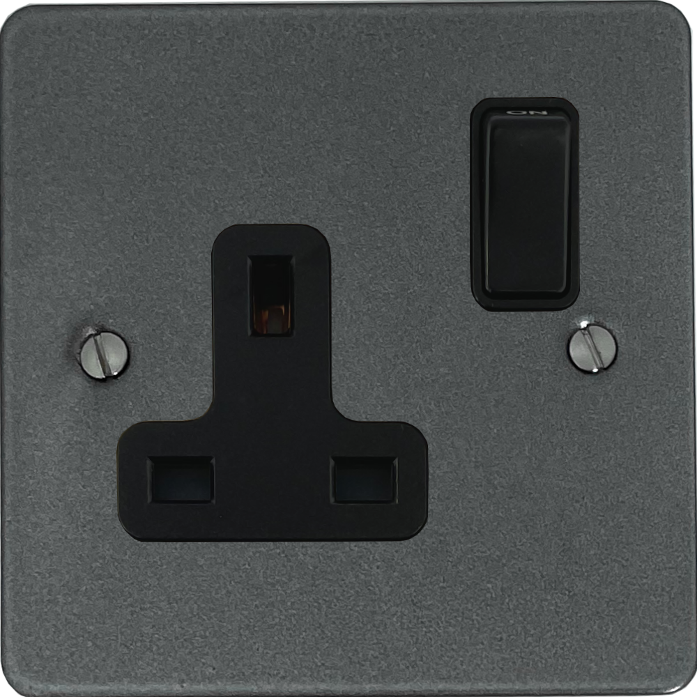 Flat Pewter Single Socket (Black Switch) - G+H FP9B