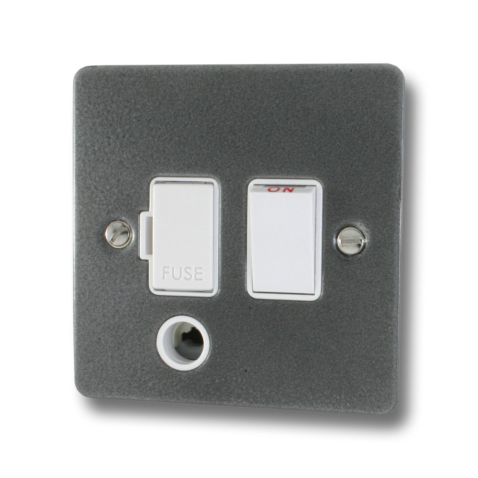 Flat Pewter Switched Fused Spur with Flex Outlet (White Switch) - G+H FP56W