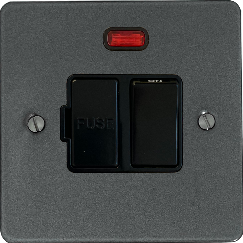 Flat Pewter Switched Fused Spur with Neon (Black Insert/Black Switch) - G+H FP27B