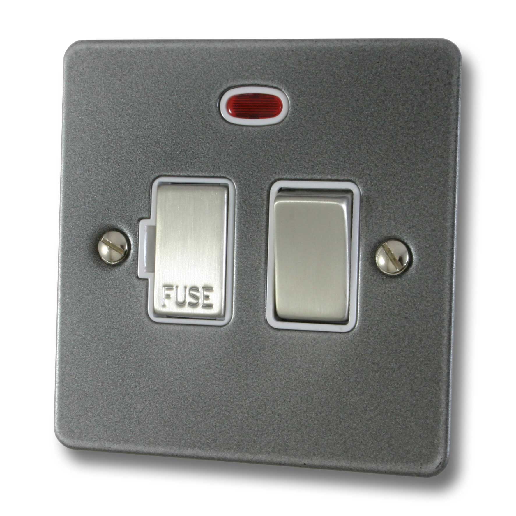 Flat Pewter Switched Fused Spur with Neon (White Insert/Satin Chrome Switch) - G+H FP227
