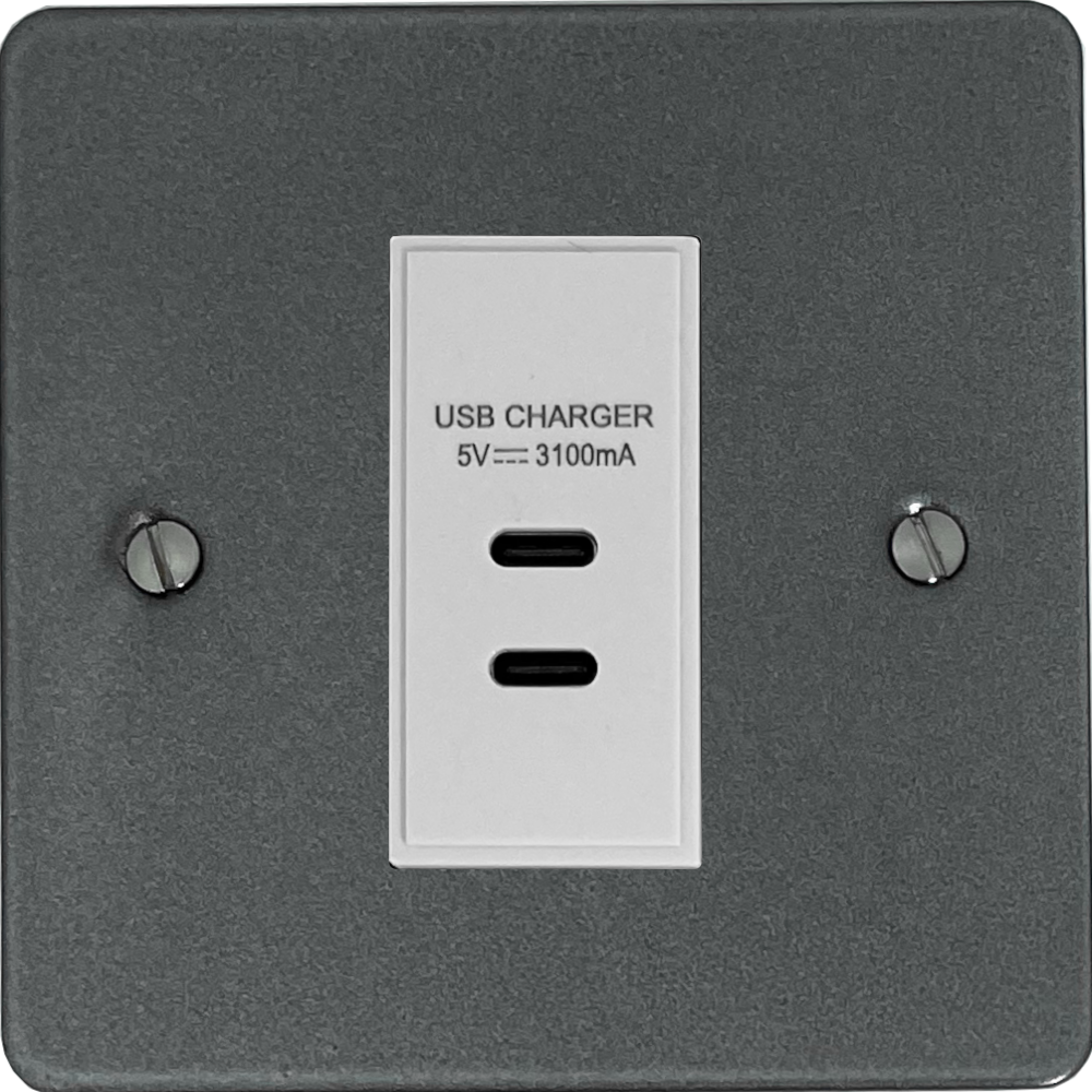 Flat Pewter USB Charger (2x USB-C) (1 Gang/White Insert) - G+H FP42W