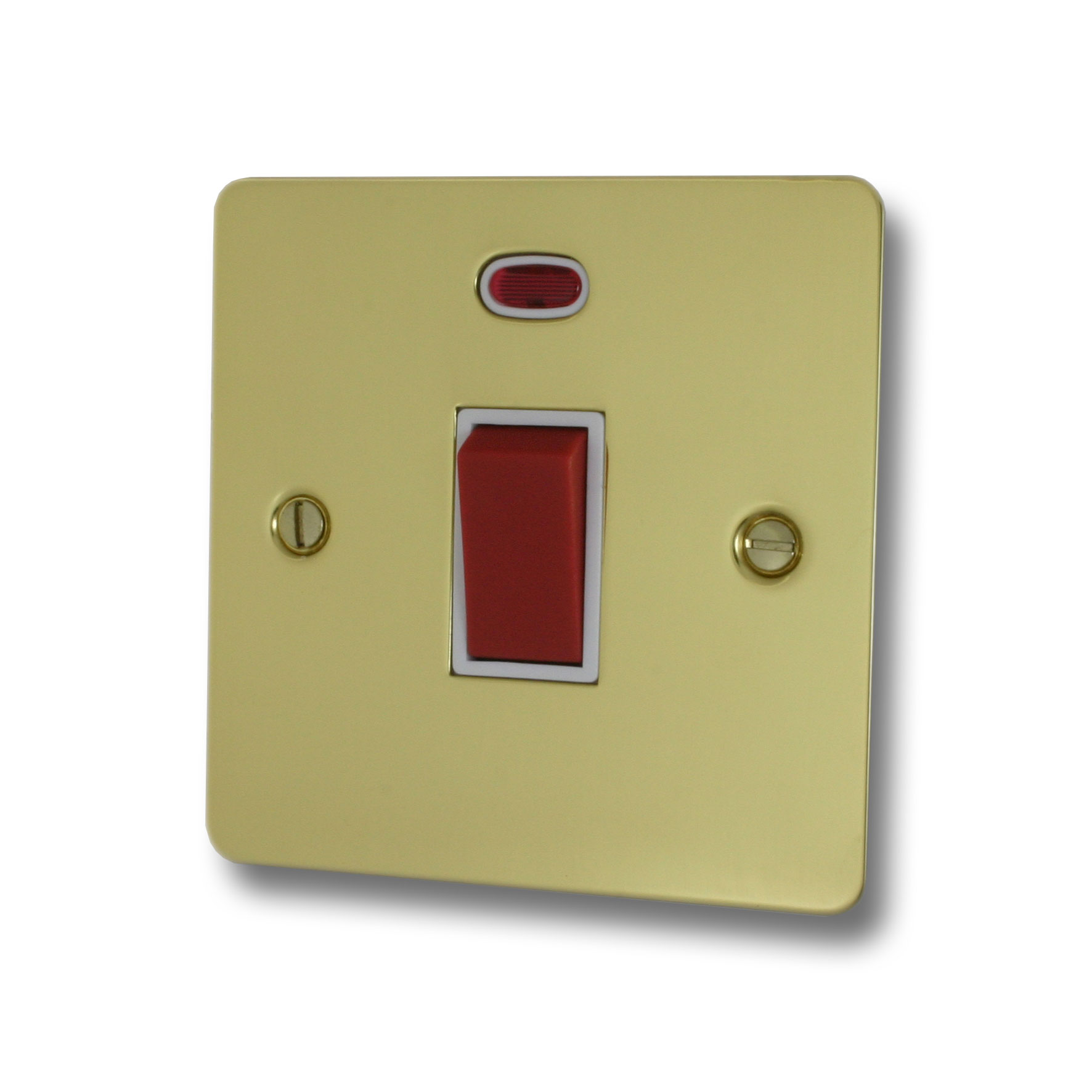 Flat Polished Brass 45A DP Switch with Neon (White Insert) - G+H FB46W