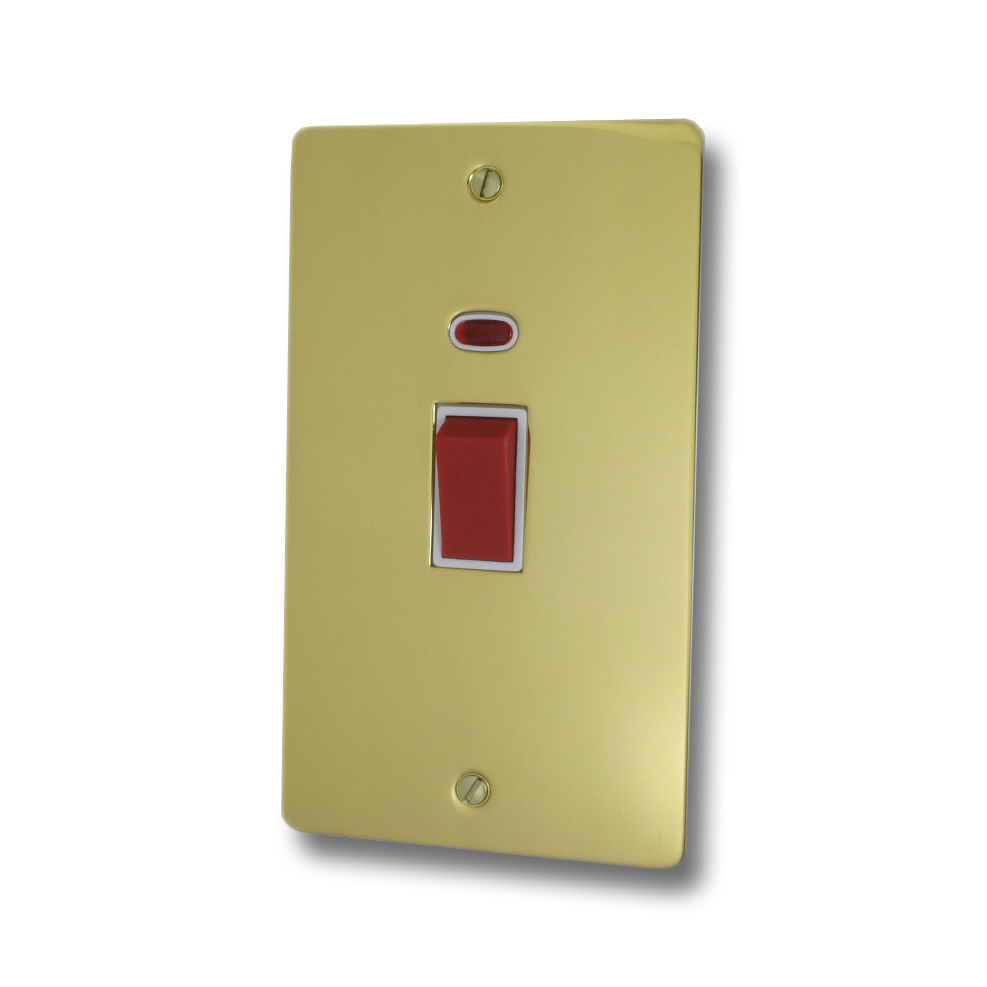 Flat Polished Brass 45A DP Switch with Neon (White Insert/Vertical Plate) - G+H FB28W