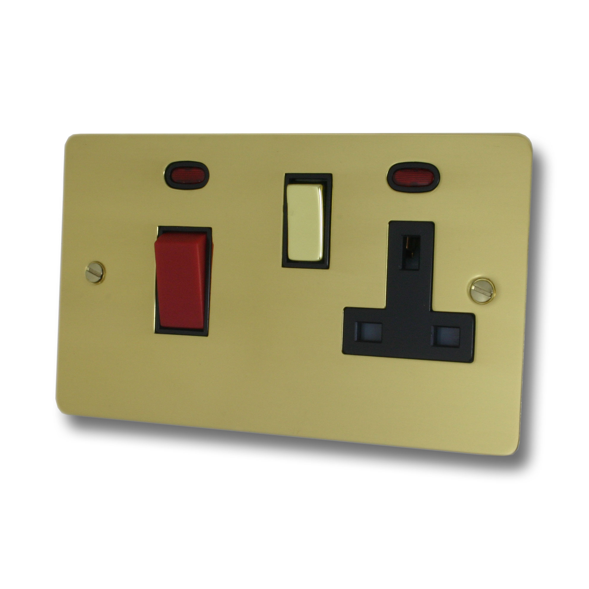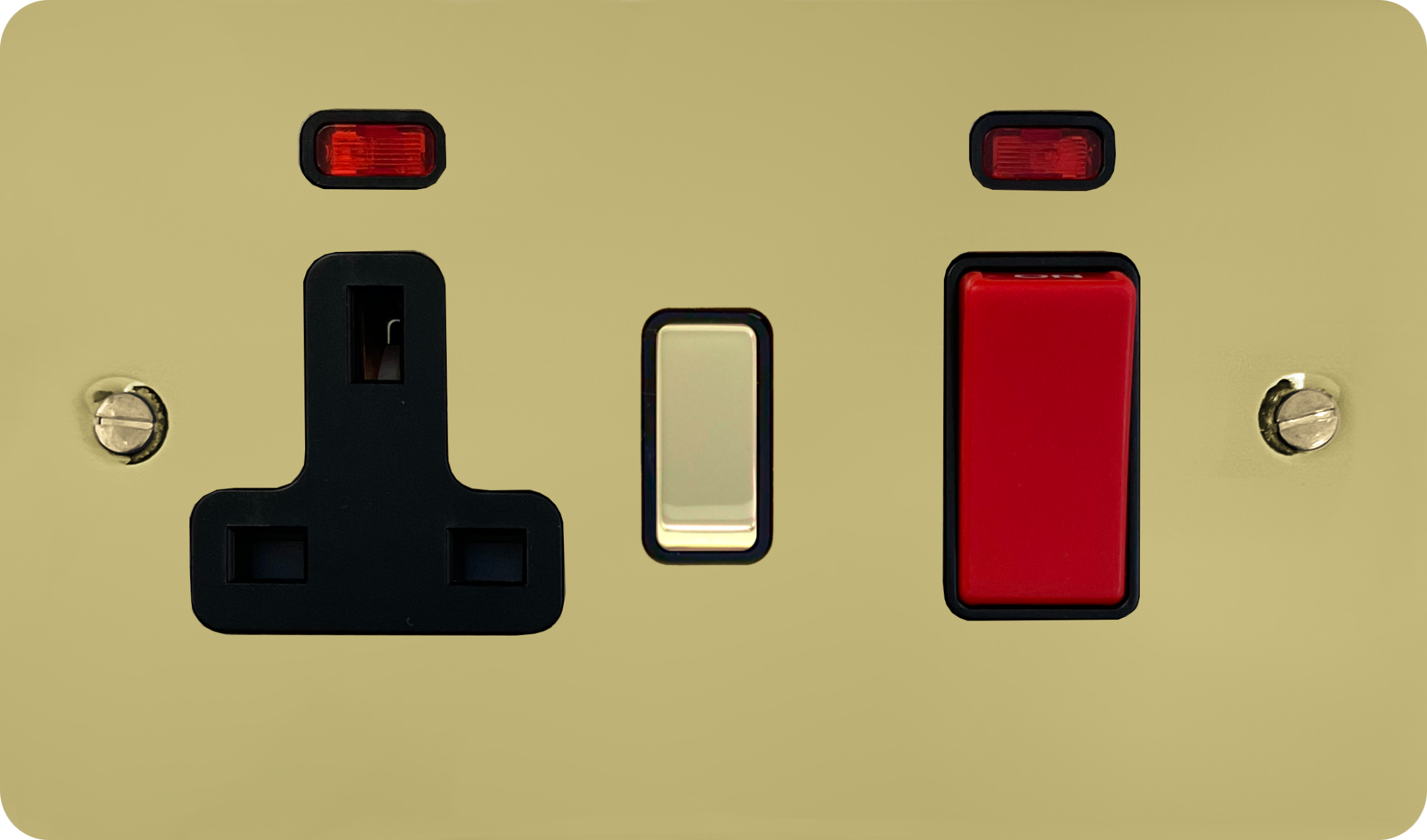 Flat Polished Brass Cooker Switch with Socket (Brass Switch) - G+H FB329