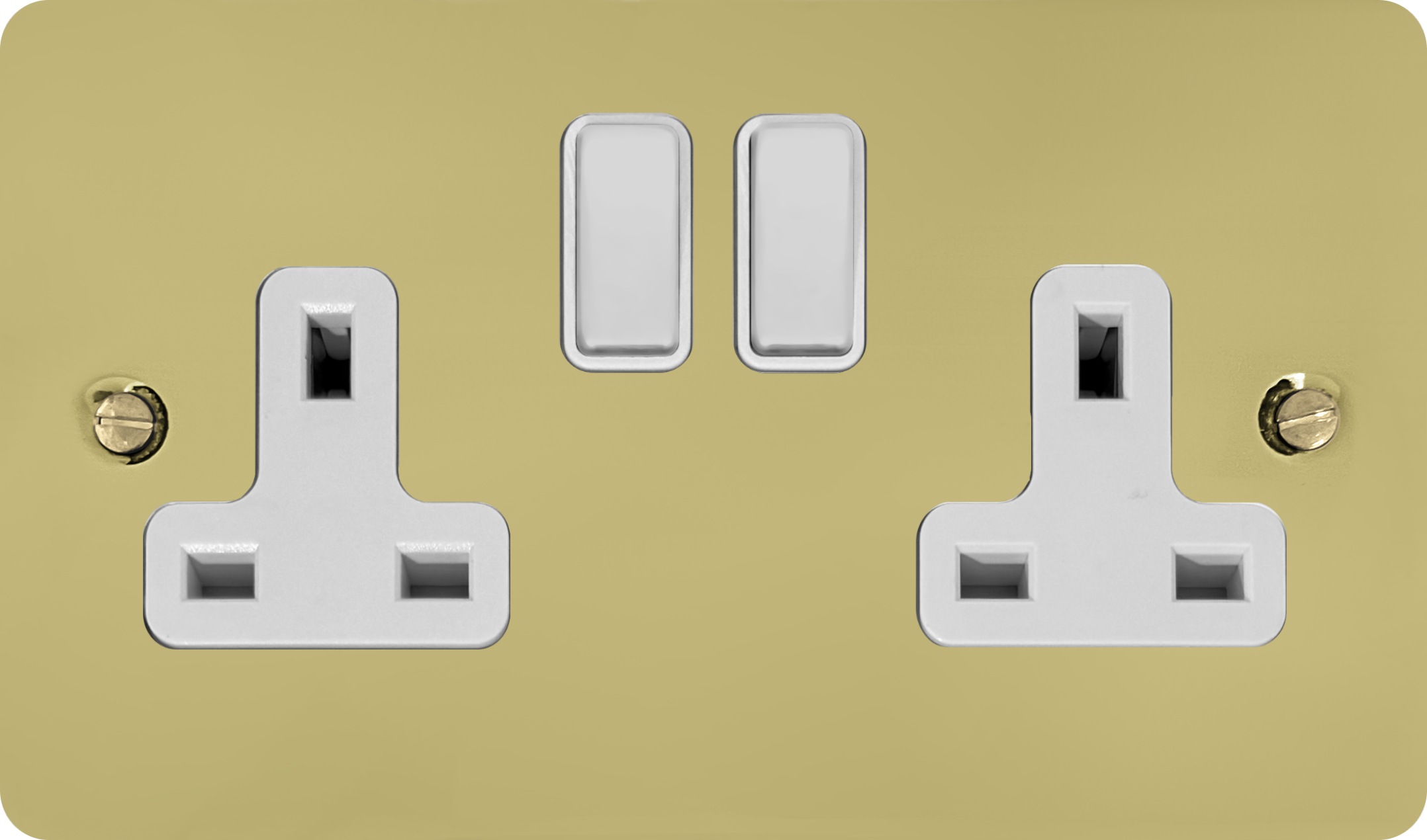 Flat Polished Brass Double Socket (White Switches) - G+H FB10W