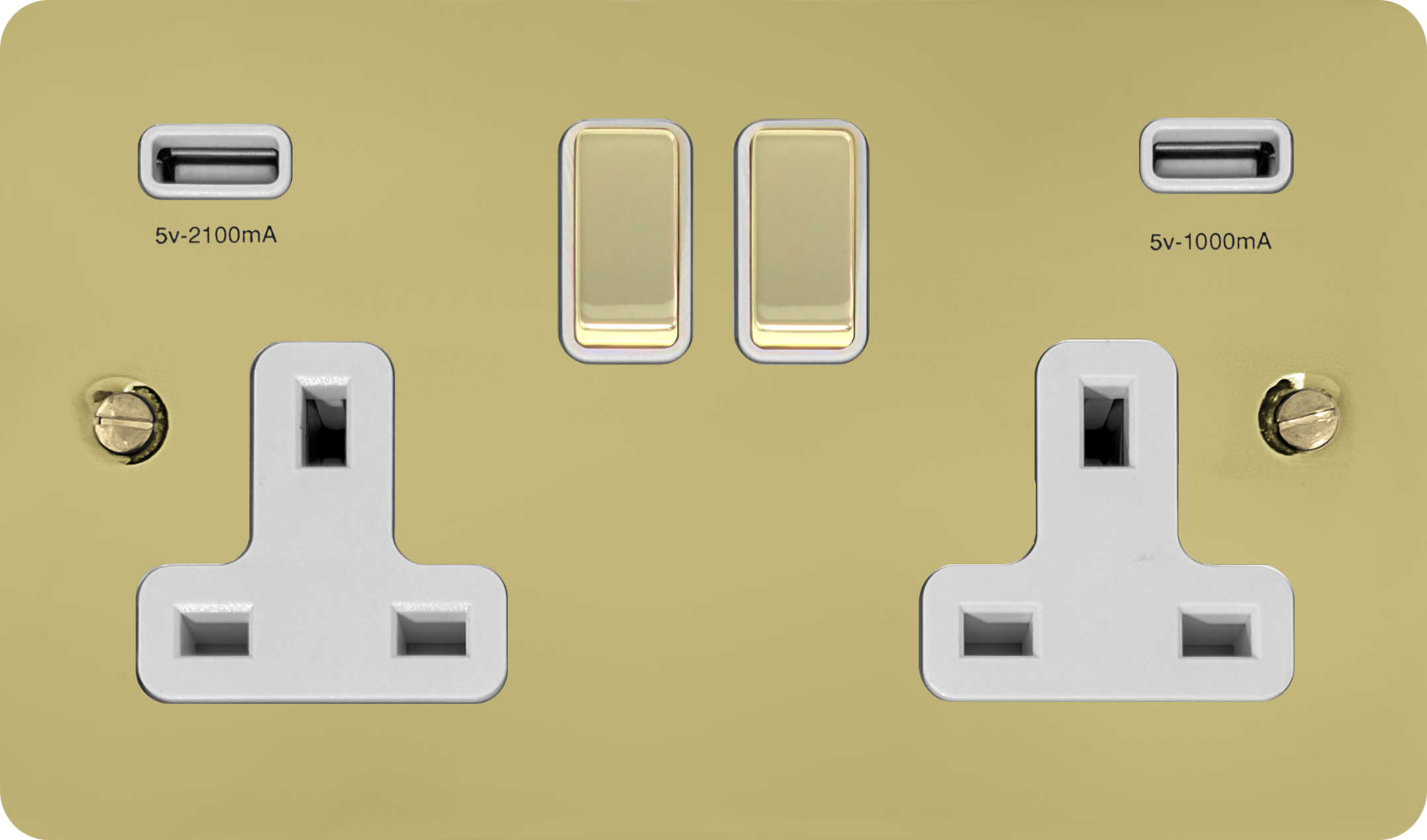 Flat Polished Brass Double Socket with USB (Brass Switches) - G+H FB2910