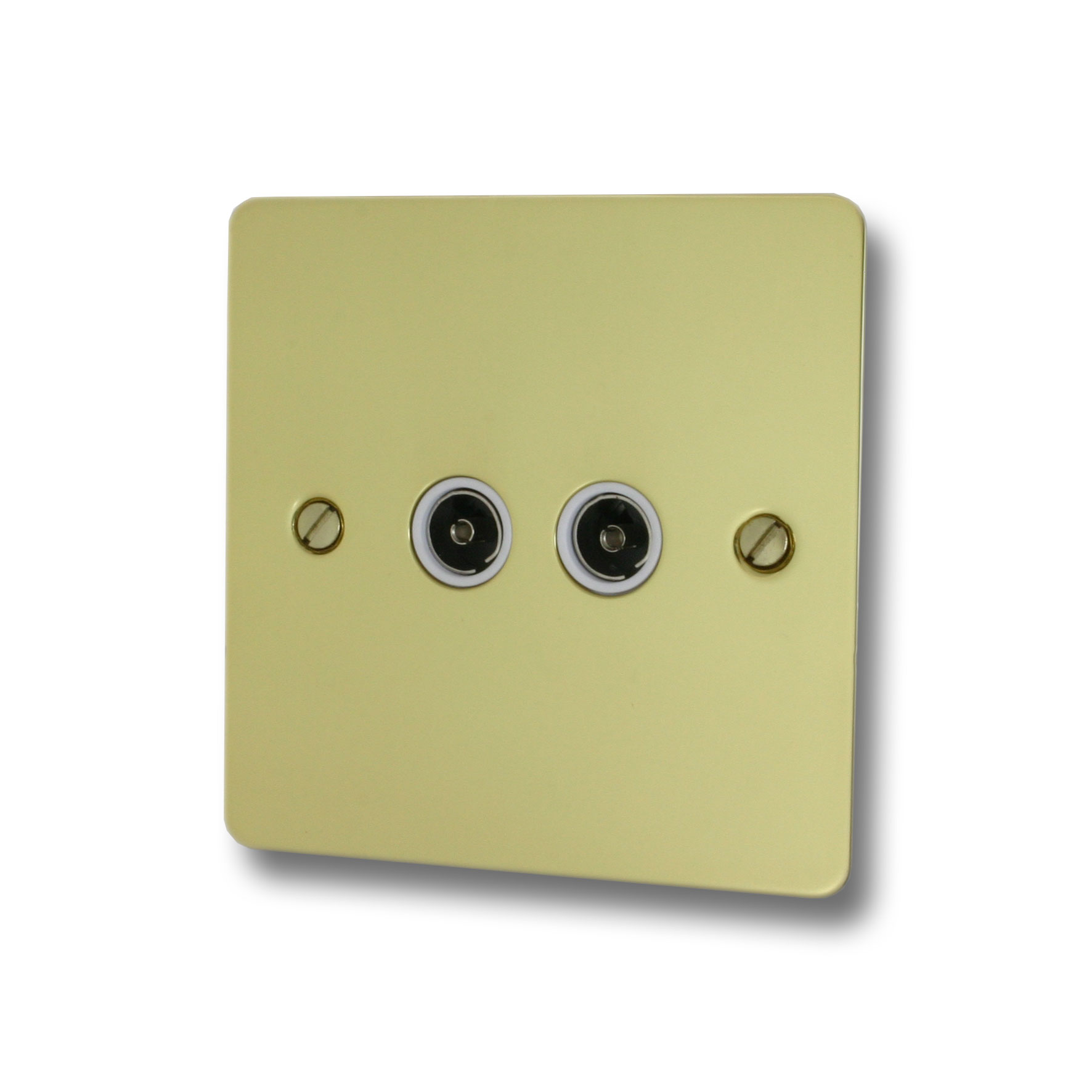 Flat Polished Brass Double TV Point (White Insert) - G+H FB36W