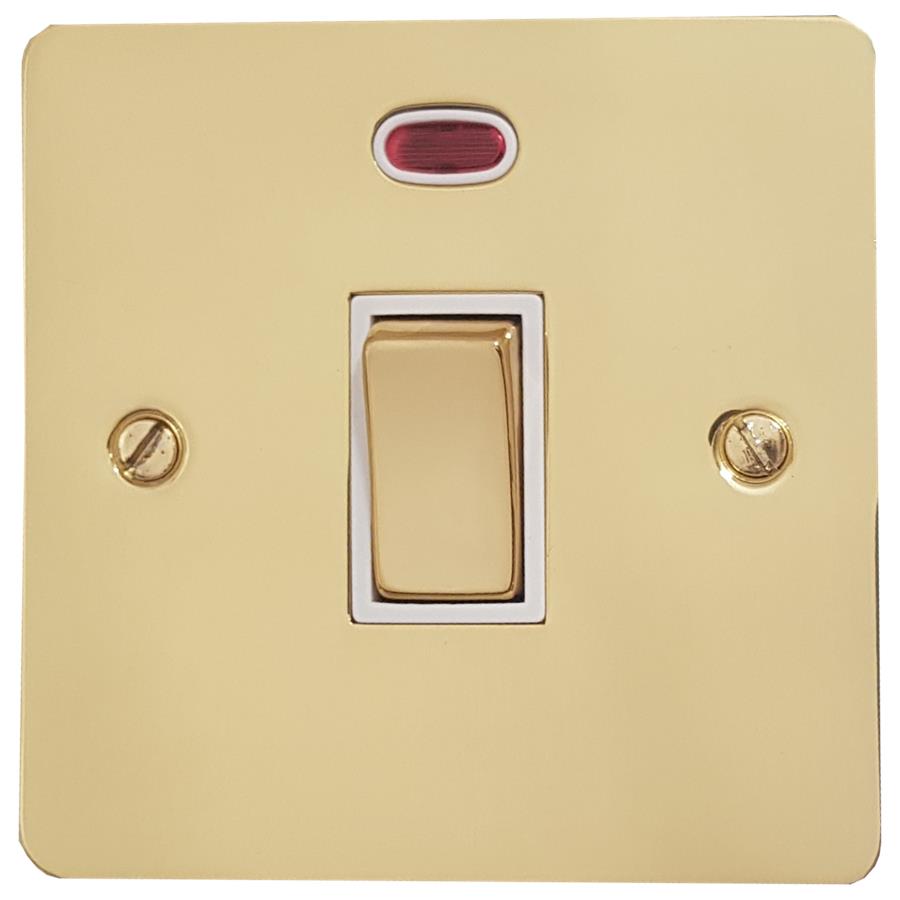 Flat Polished Brass Hand Waxed 20A DP Switch with Neon (Brass Switch/White Inserts) - G+H FHX226