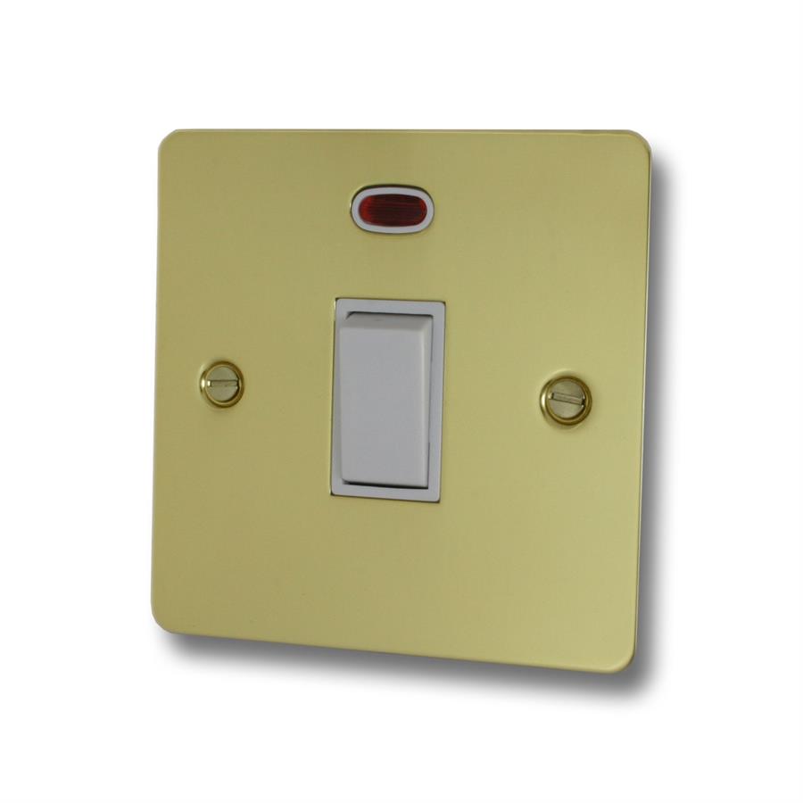 Flat Polished Brass Hand Waxed 20A DP Switch with Neon (White Switch) - G+H FHX26W