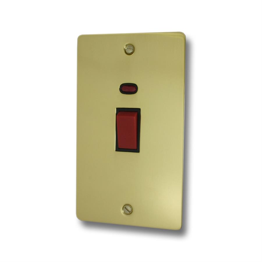 Flat Polished Brass Hand Waxed 45A DP Switch with Neon (Black Insert/Vertical Plate)