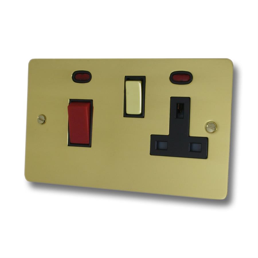 Flat Polished Brass Hand Waxed Cooker Switch with Socket (Brass Switch)