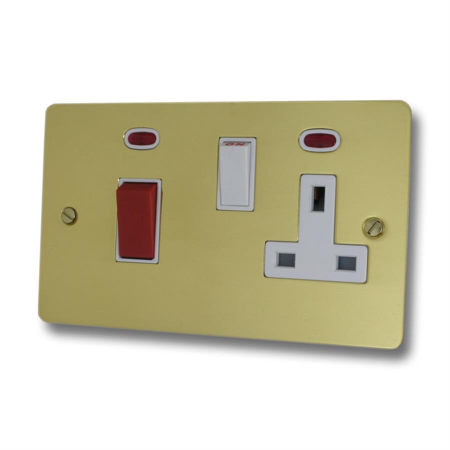 Flat Polished Brass Hand Waxed Cooker Switch with Socket (White Switch)