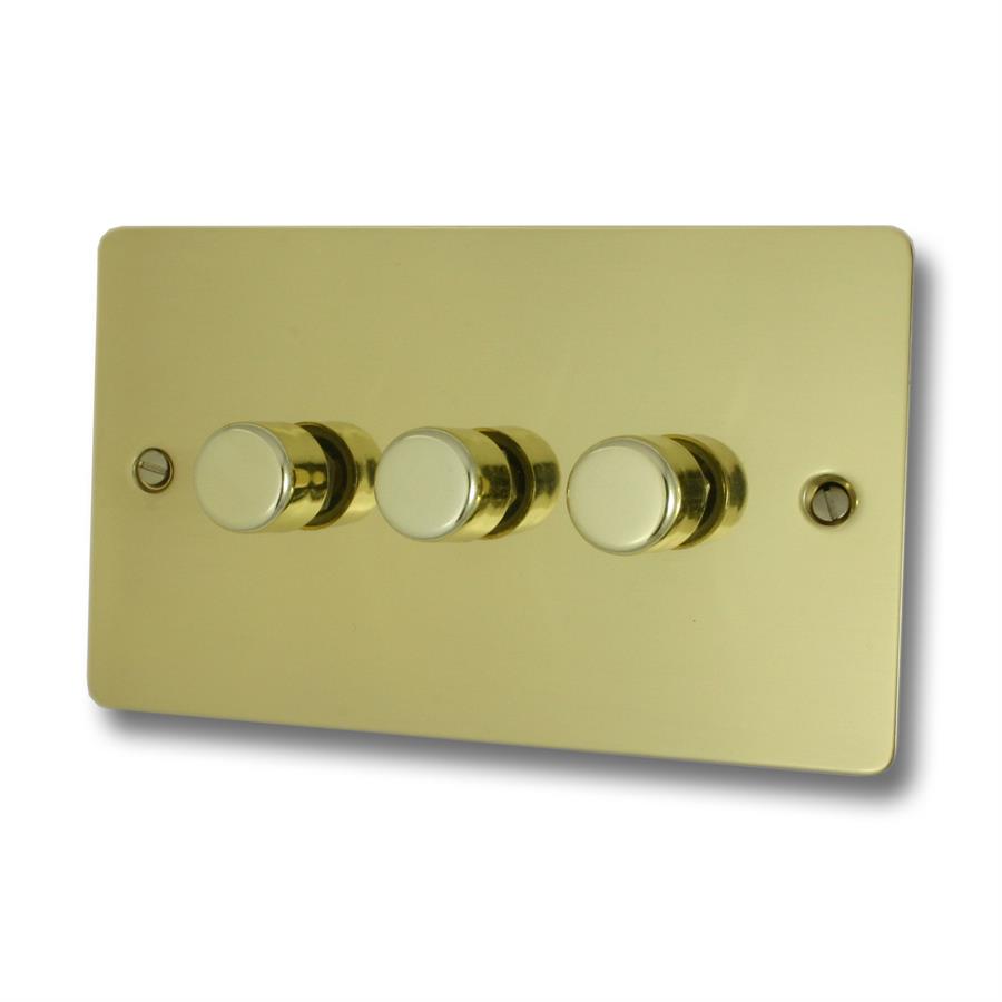 Flat Polished Brass Hand Waxed LED Dimmer (3 Gang)