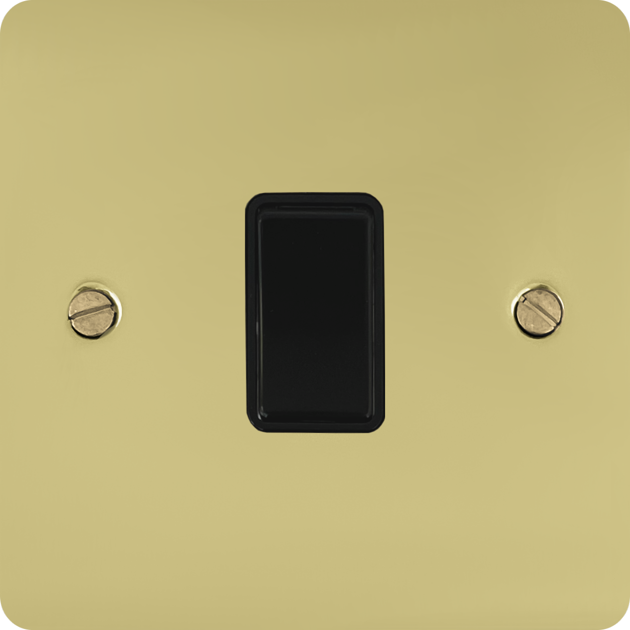 Flat Polished Brass Hand Waxed Light Switch (1 Gang/Black Switch) - G+H FHX1B