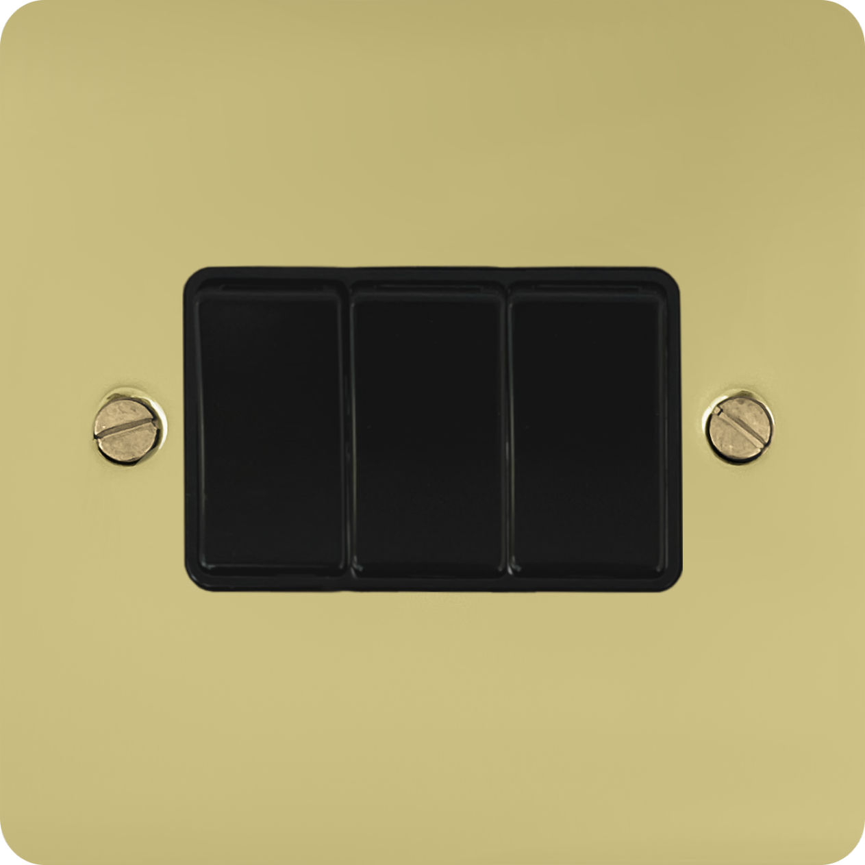 Flat Polished Brass Hand Waxed Light Switch (3 Gang/Black Switches) - G+H FHX3B
