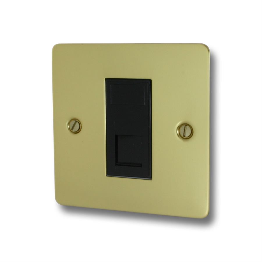 Flat Polished Brass Hand Waxed RJ45 Socket (1 Gang/Black Insert) - G+H FHX61B