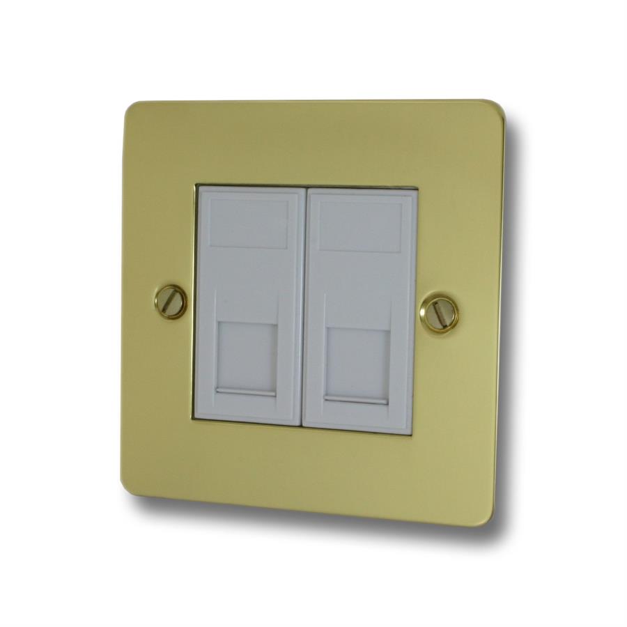 Flat Polished Brass Hand Waxed RJ45 Socket (2 Gang/White Insert) - G+H FHX62W