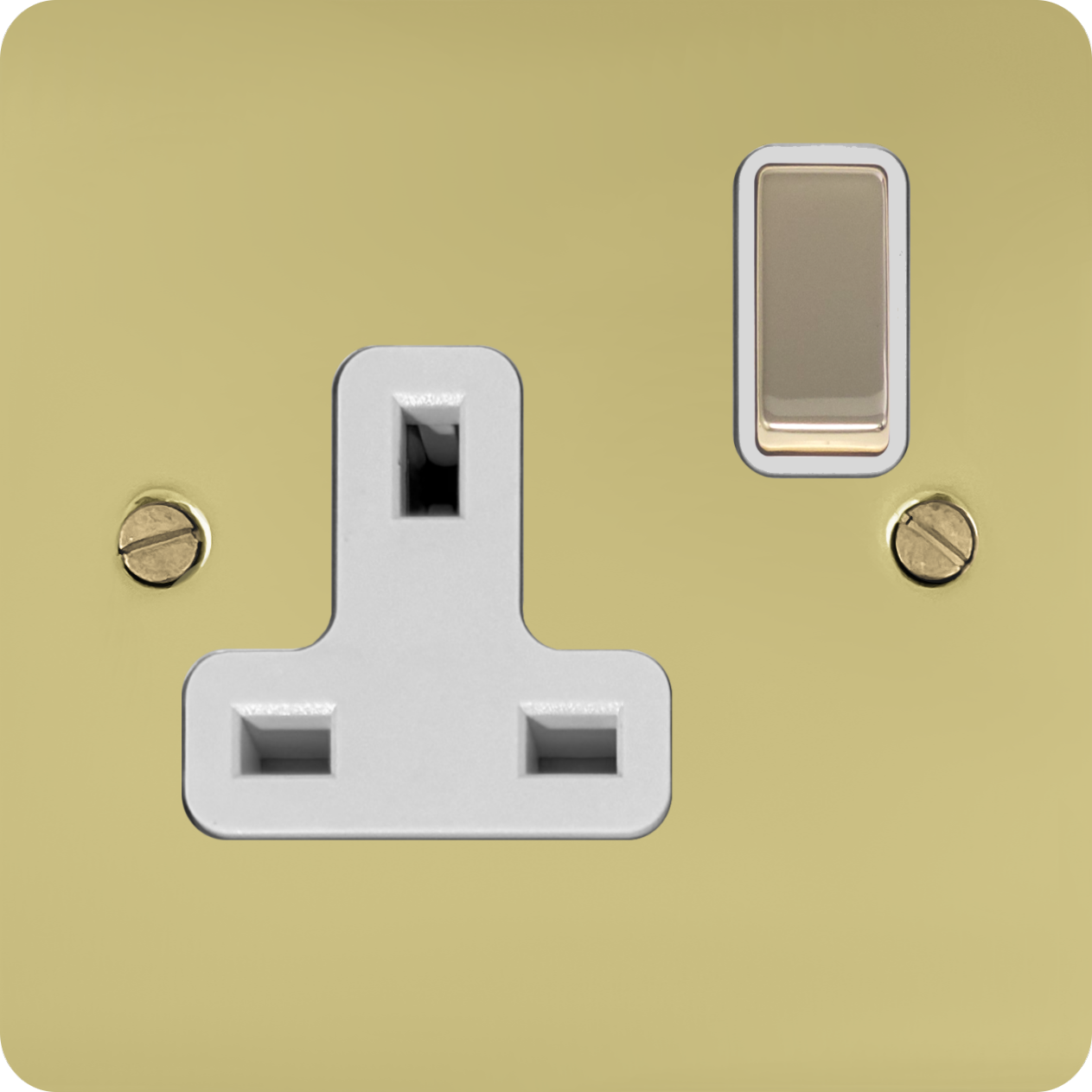 Flat Polished Brass Hand Waxed Single Socket (Brass Switch/White Inserts) - G+H FHX209