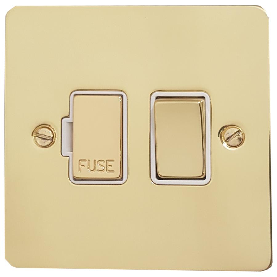 Flat Polished Brass Hand Waxed Switched Fused Spur (Brass Switch/White Inserts) - G+H FHX257