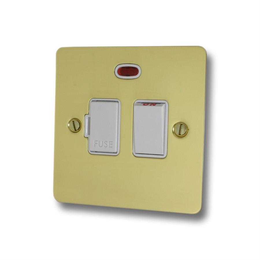 Flat Polished Brass Hand Waxed Switched Fused Spur with Neon (White Switch) - G+H FHX27W