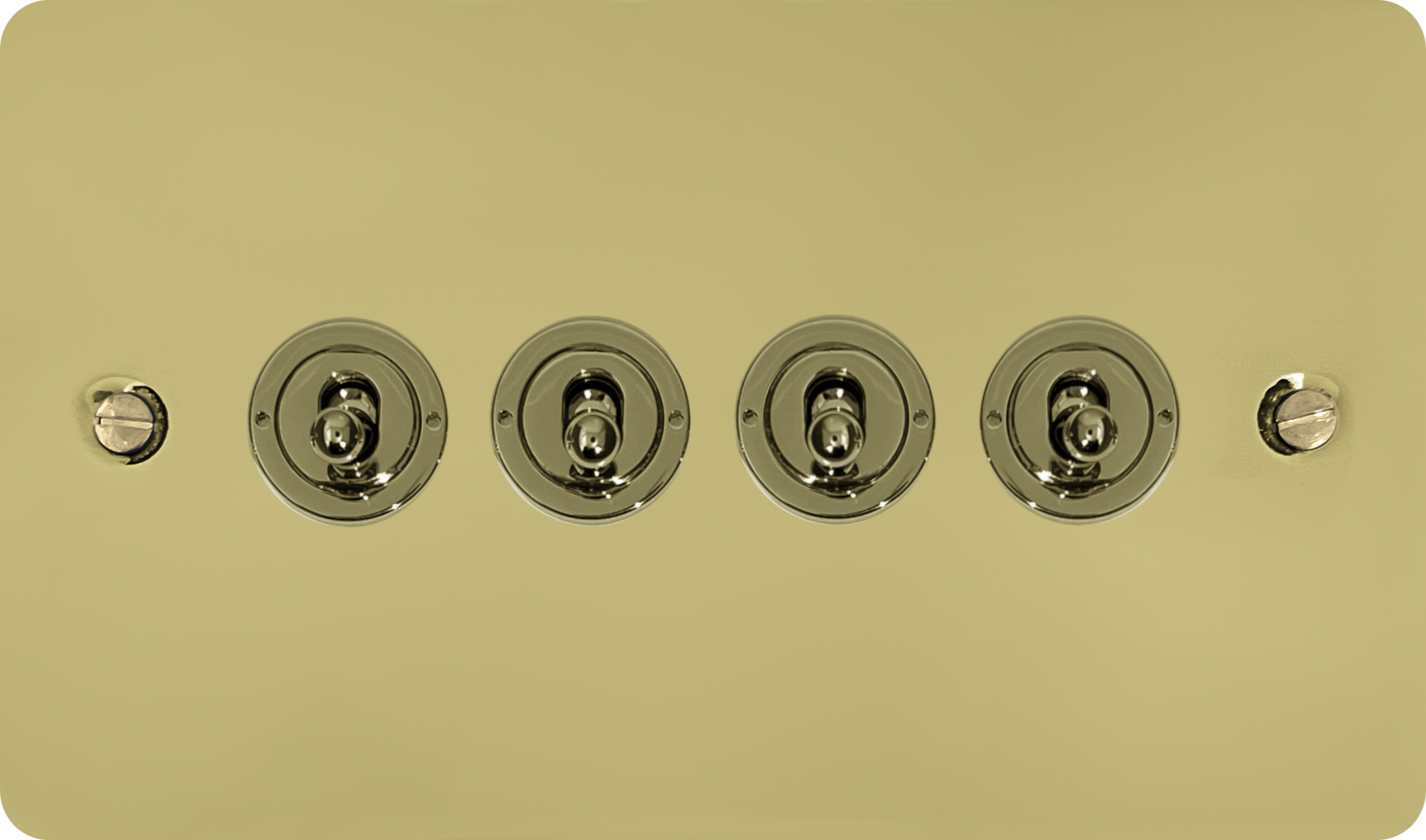 Flat Polished Brass Hand Waxed Toggle Switch (4 Gang)