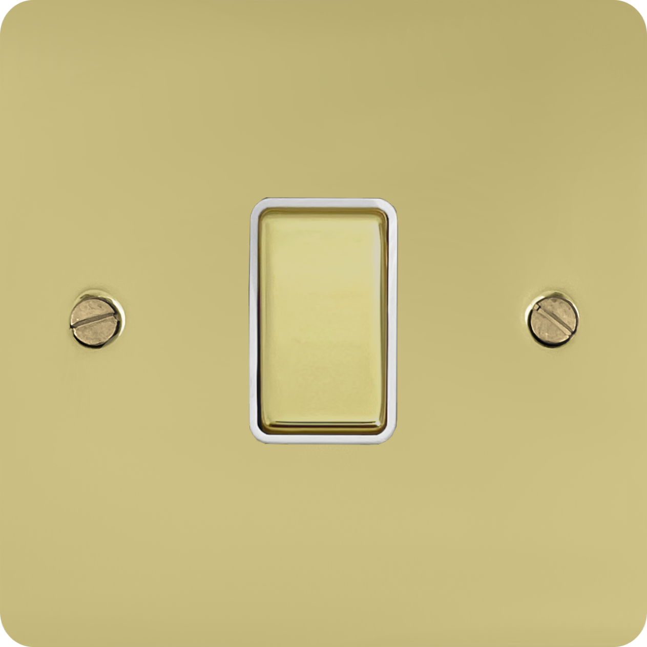 Flat Polished Brass Light Switch (1 Gang/Brass Switch/White Inserts)