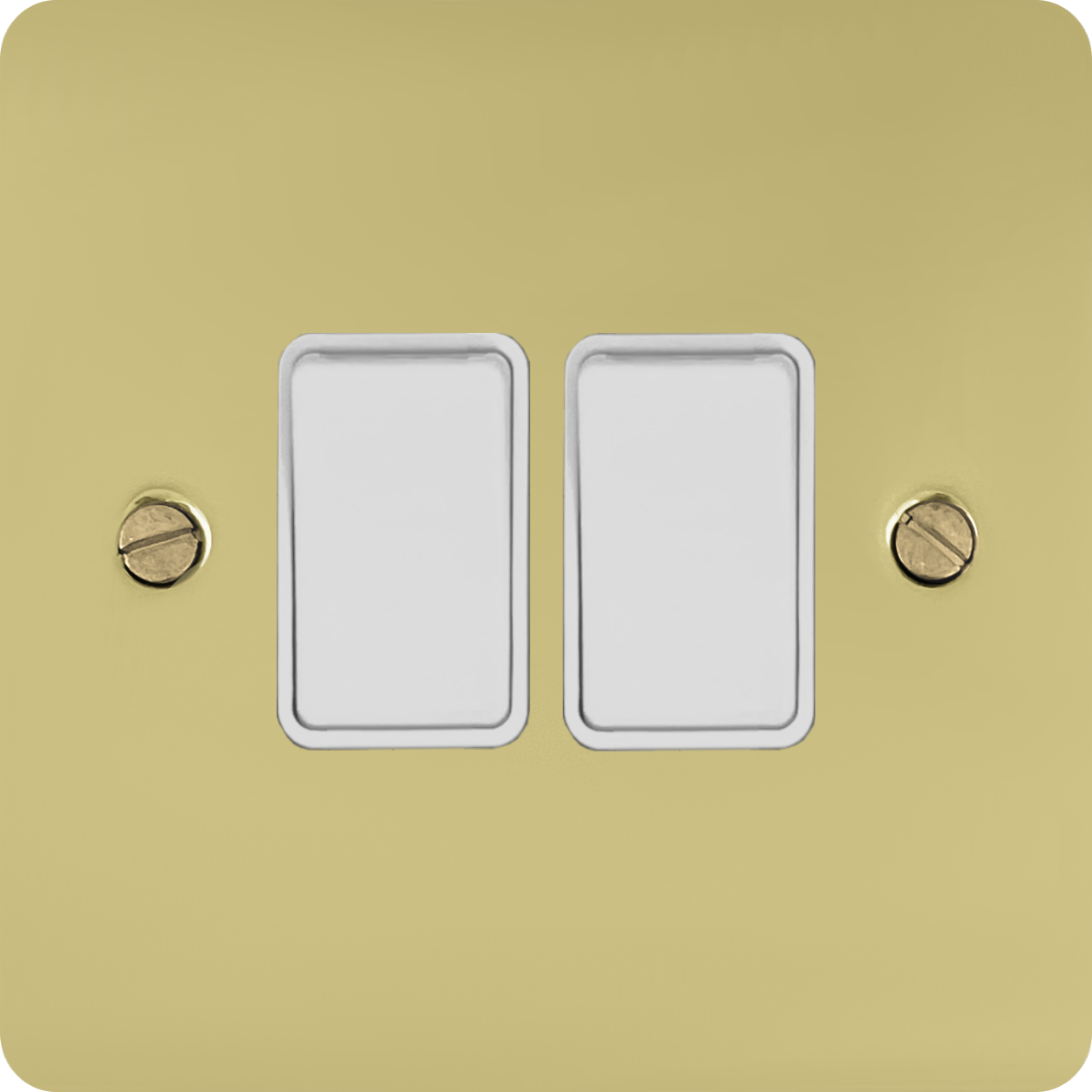 Flat Polished Brass Light Switch (2 Gang/White Switches) - G+H FB2W