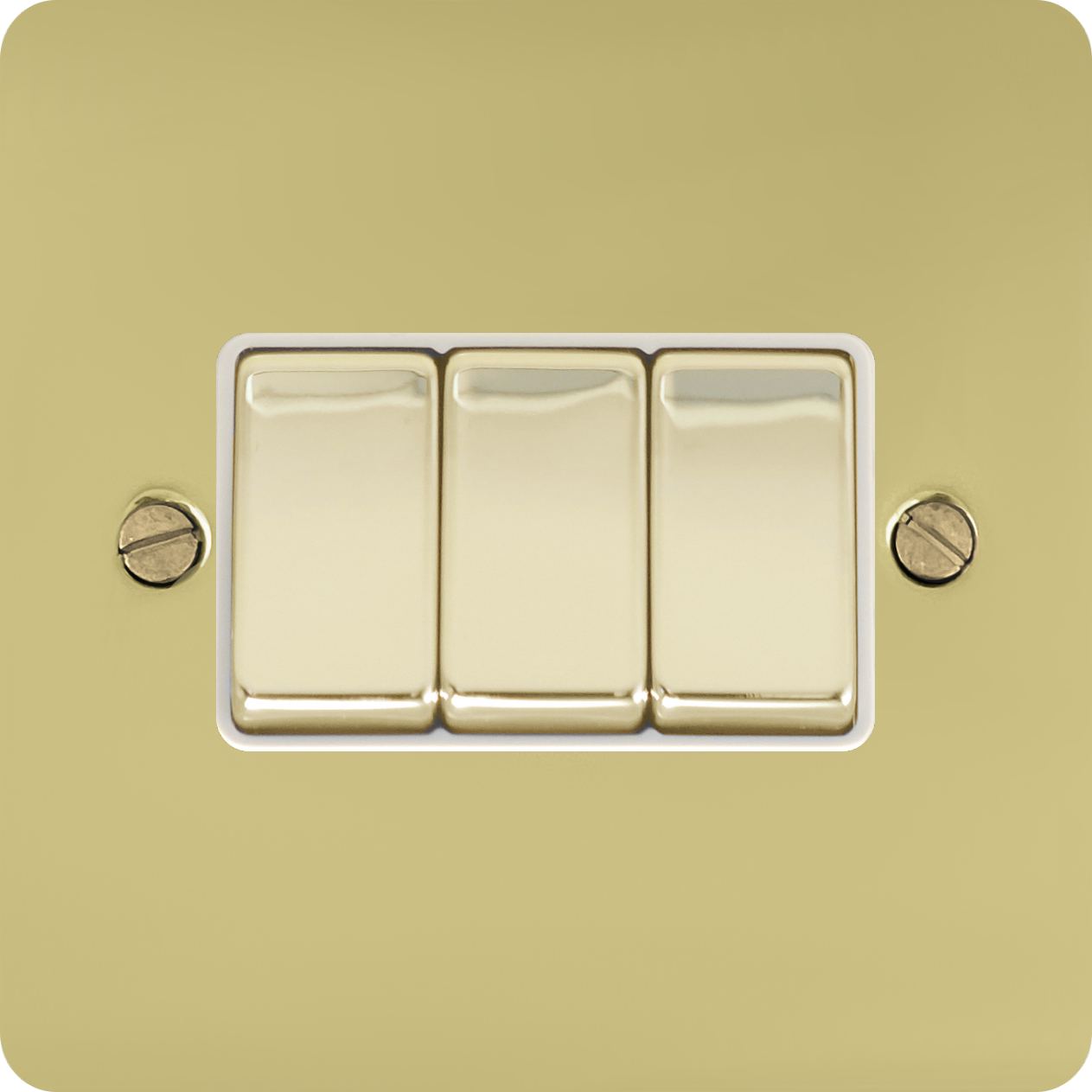Flat Polished Brass Light Switch (3 Gang/Brass Switches/White Inserts) - G+H FB203