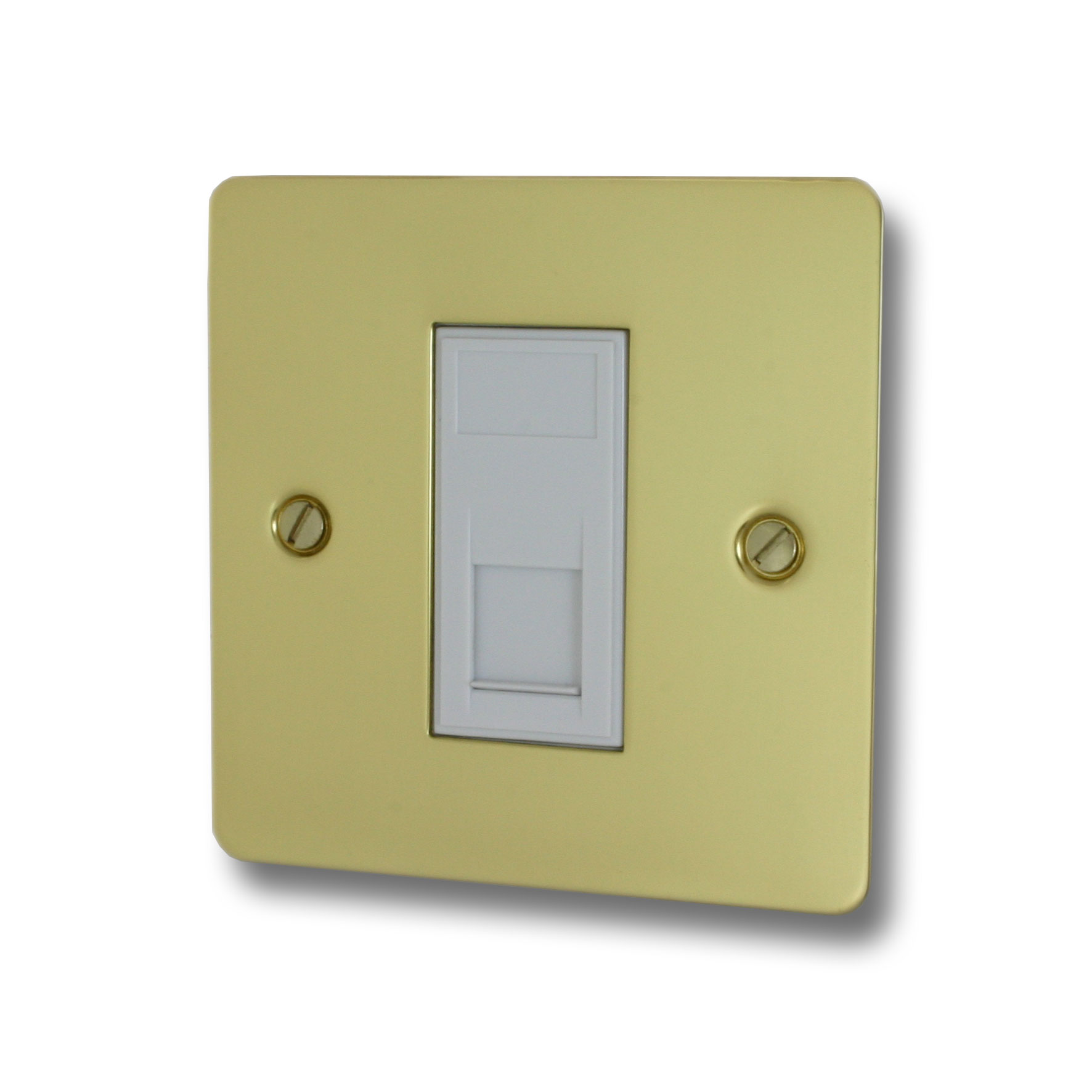 Flat Polished Brass RJ45 Socket (1 Gang/White Insert) - G+H FB61W