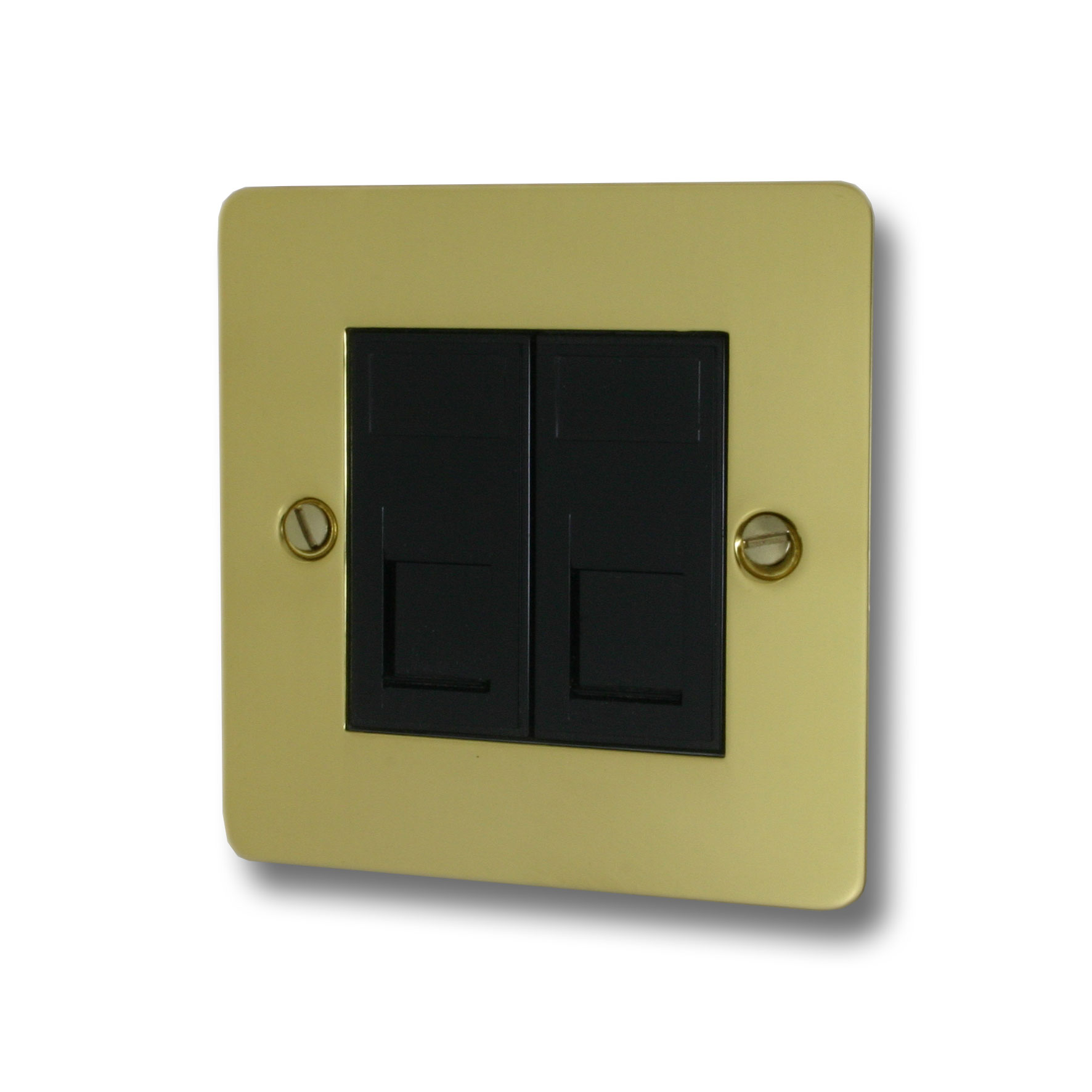 Flat Polished Brass RJ45 Socket (2 Gang/Black Insert)