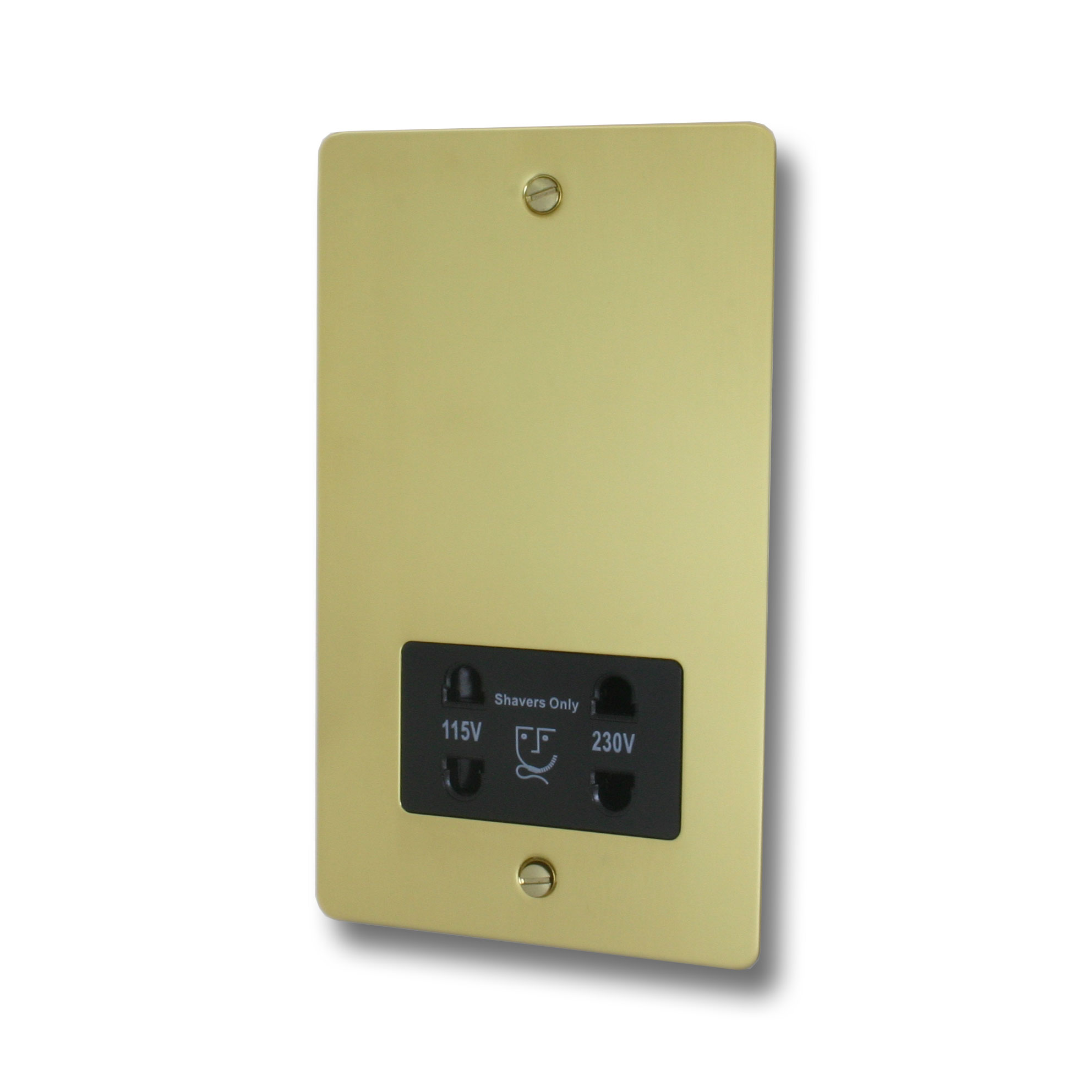 Flat Polished Brass Shaver Socket (Black Insert) - G+H FB30B