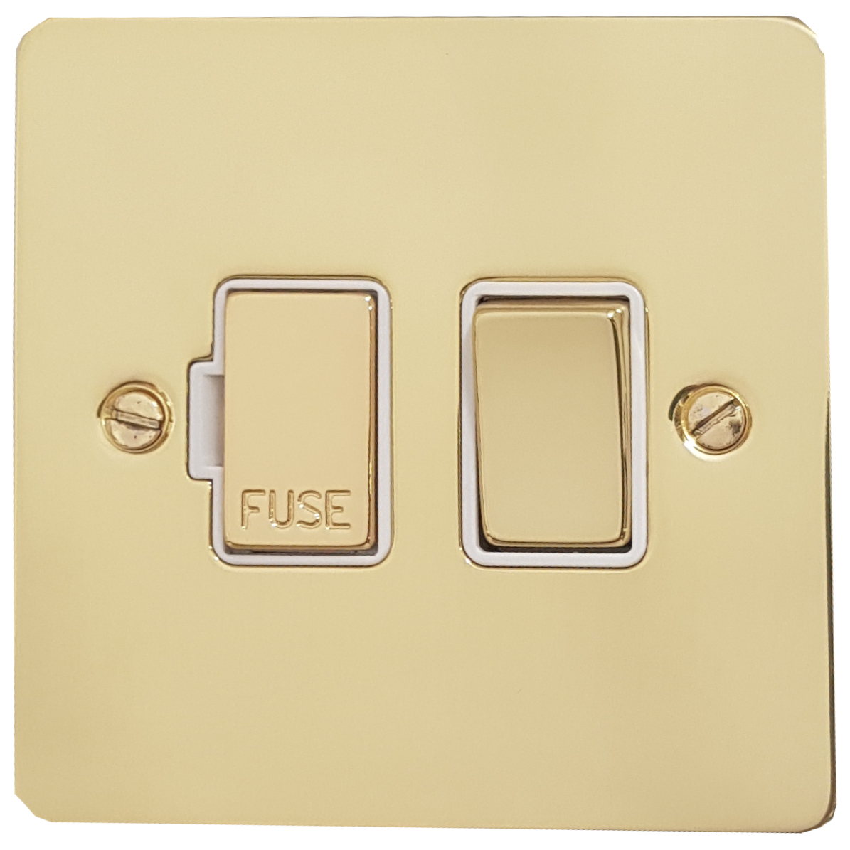 Flat Polished Brass Switched Fused Spur (Brass Switch/White Inserts) - G+H FB257