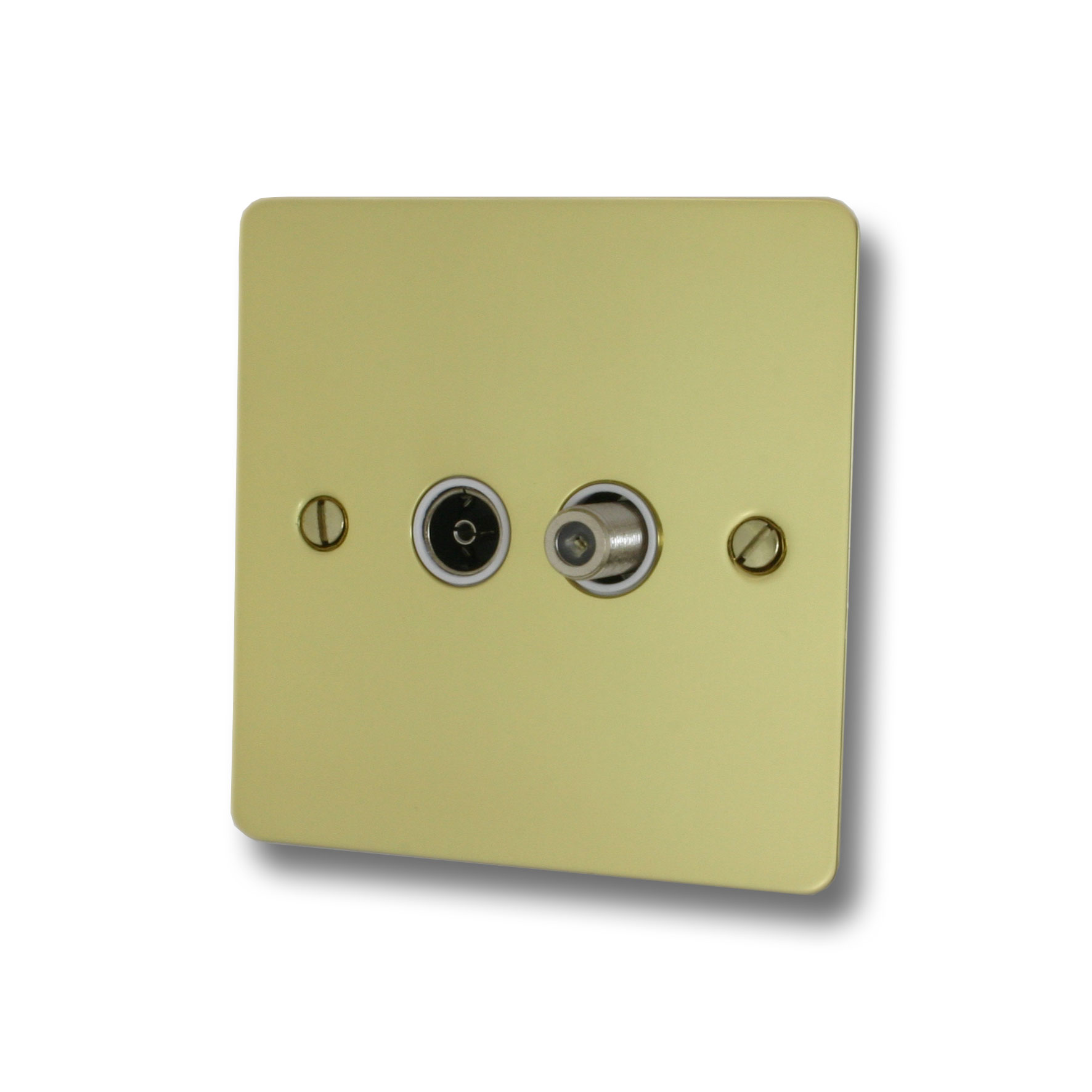 Flat Polished Brass TV/Satellite Socket (White Insert)