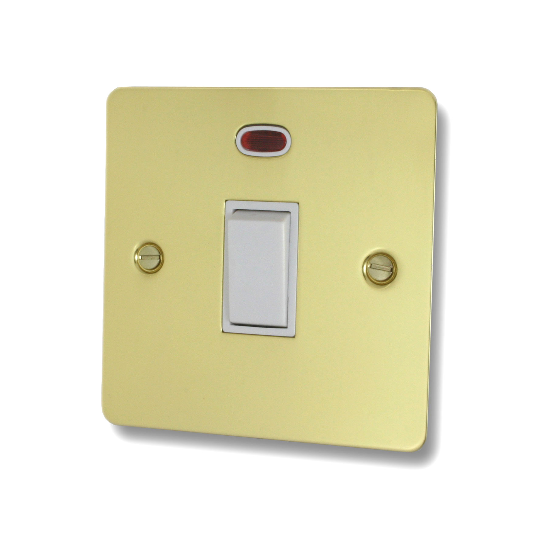 Flat Polished Brass Unlacquered 20A DP Switch with Neon (White Switch) - G+H FBUL26W