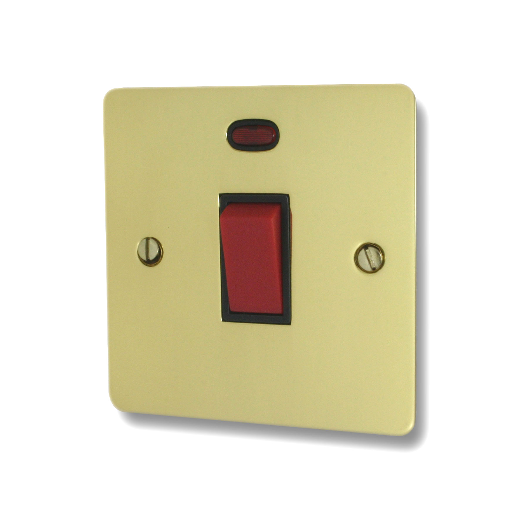 Flat Polished Brass Unlacquered 45A DP Switch with Neon (Black Insert) - G+H FBUL46B