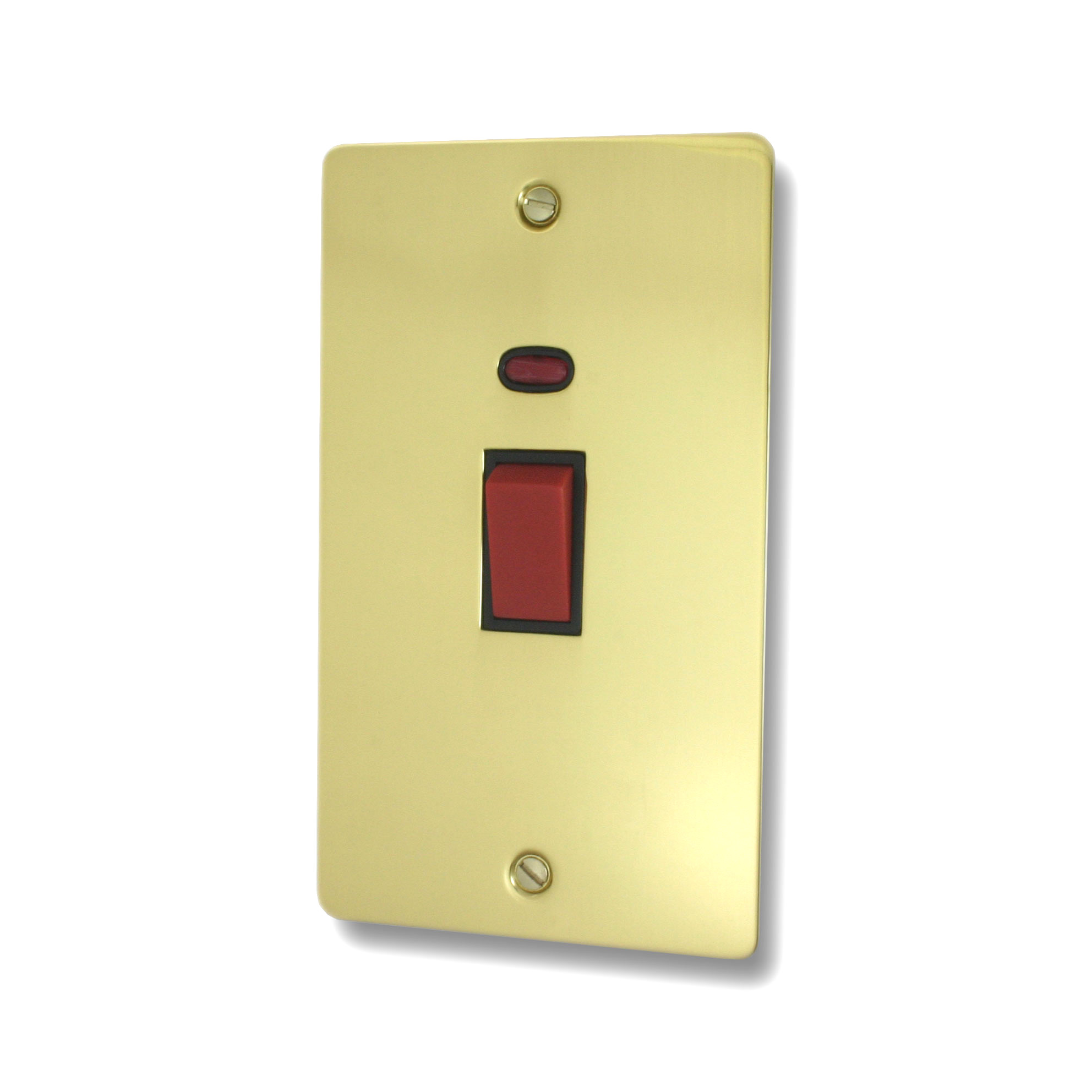 Flat Polished Brass Unlacquered 45A DP Switch with Neon (Black Insert/Vertical Plate) - G+H FBUL28B