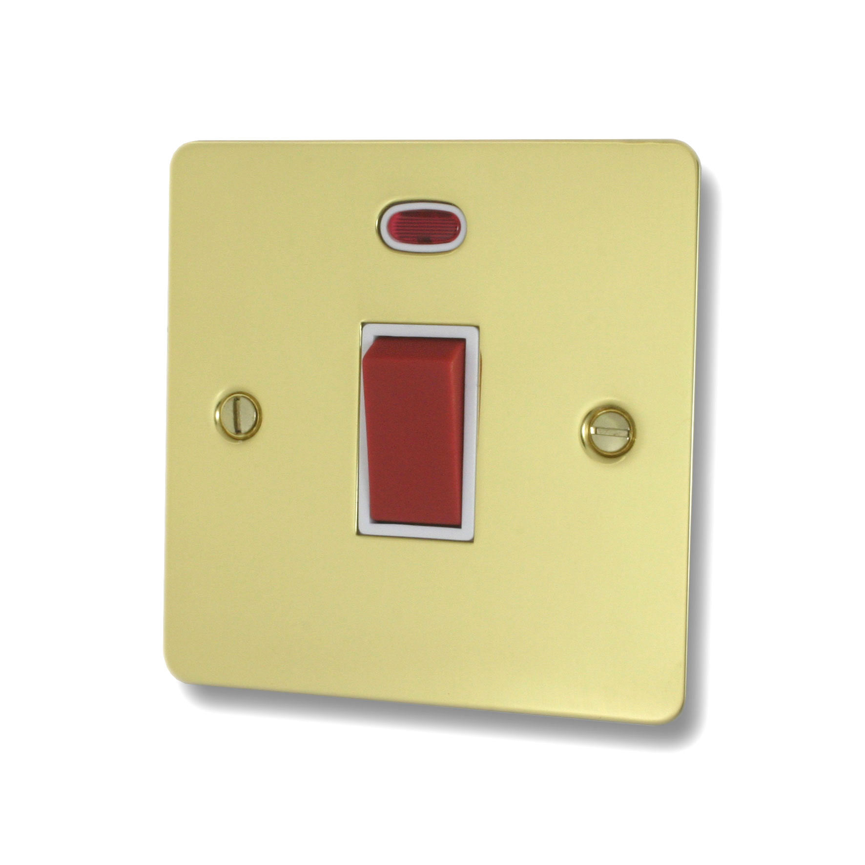 Flat Polished Brass Unlacquered 45A DP Switch with Neon (White Insert) - G+H FBUL46W