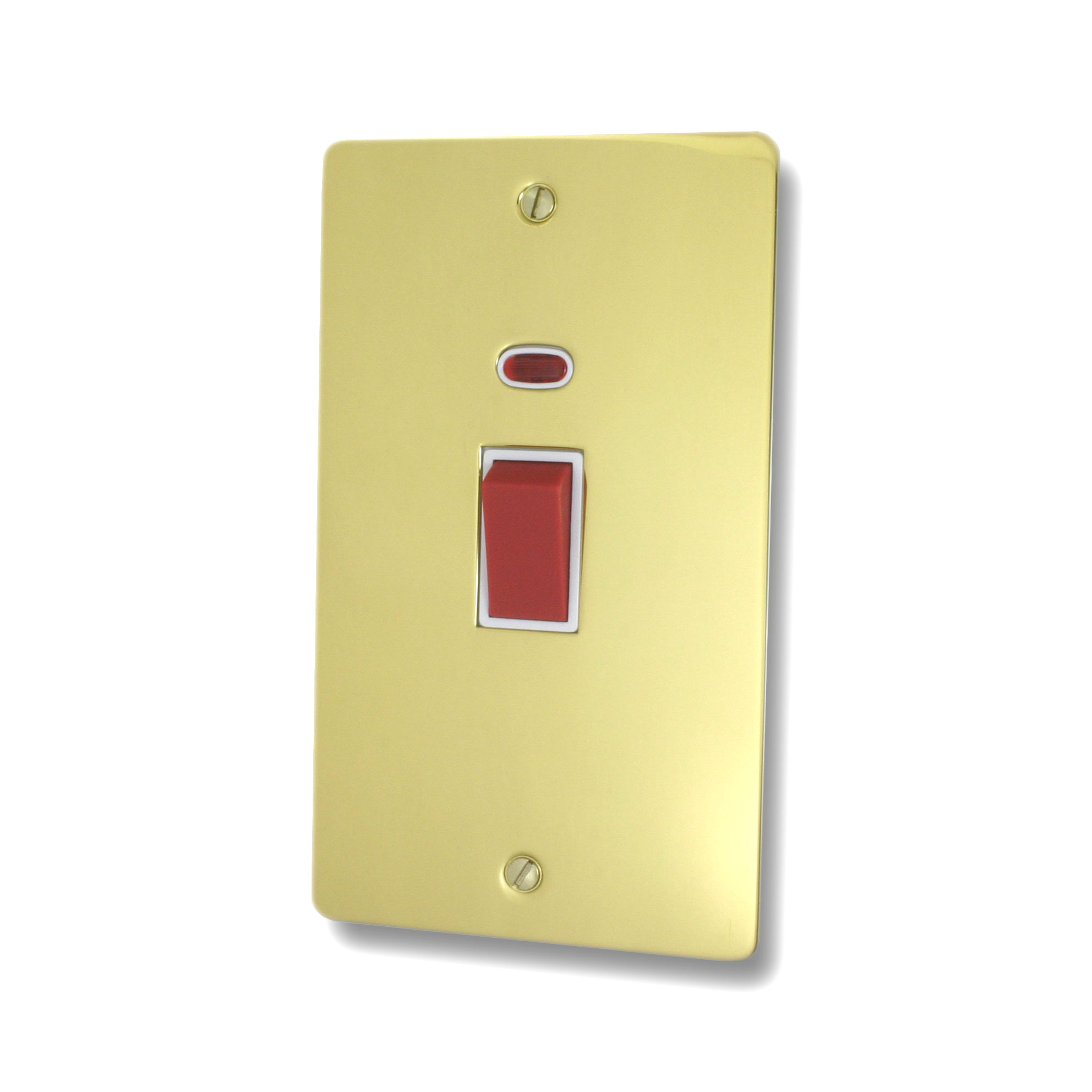 Flat Polished Brass Unlacquered 45A DP Switch with Neon (White Insert/Vertical Plate) - G+H FBUL28W