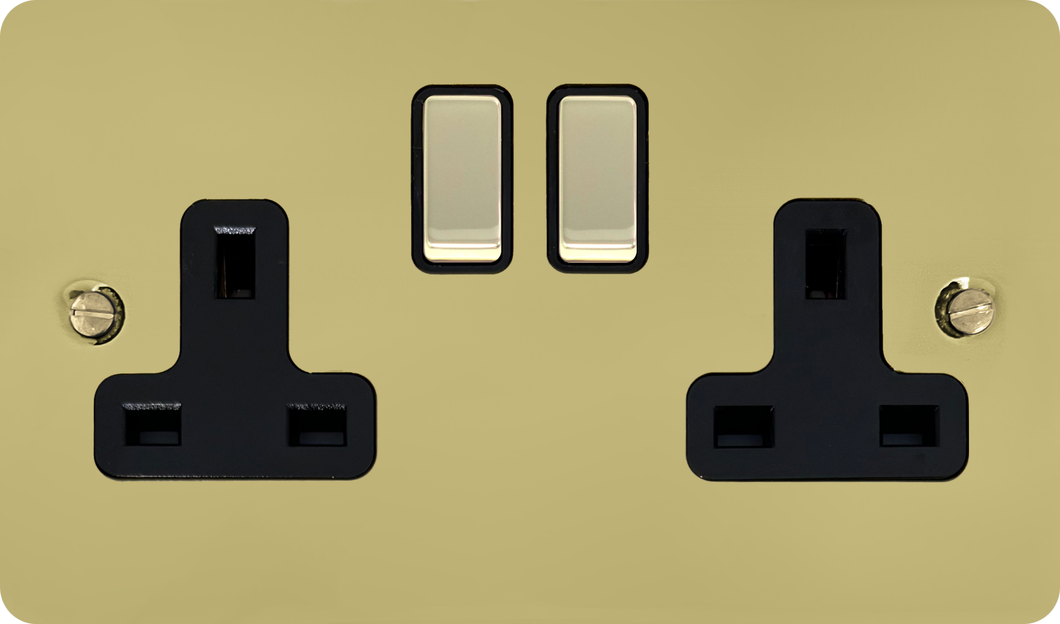 Flat Polished Brass Unlacquered Double Socket (Brass Switches) - G+H FBUL310