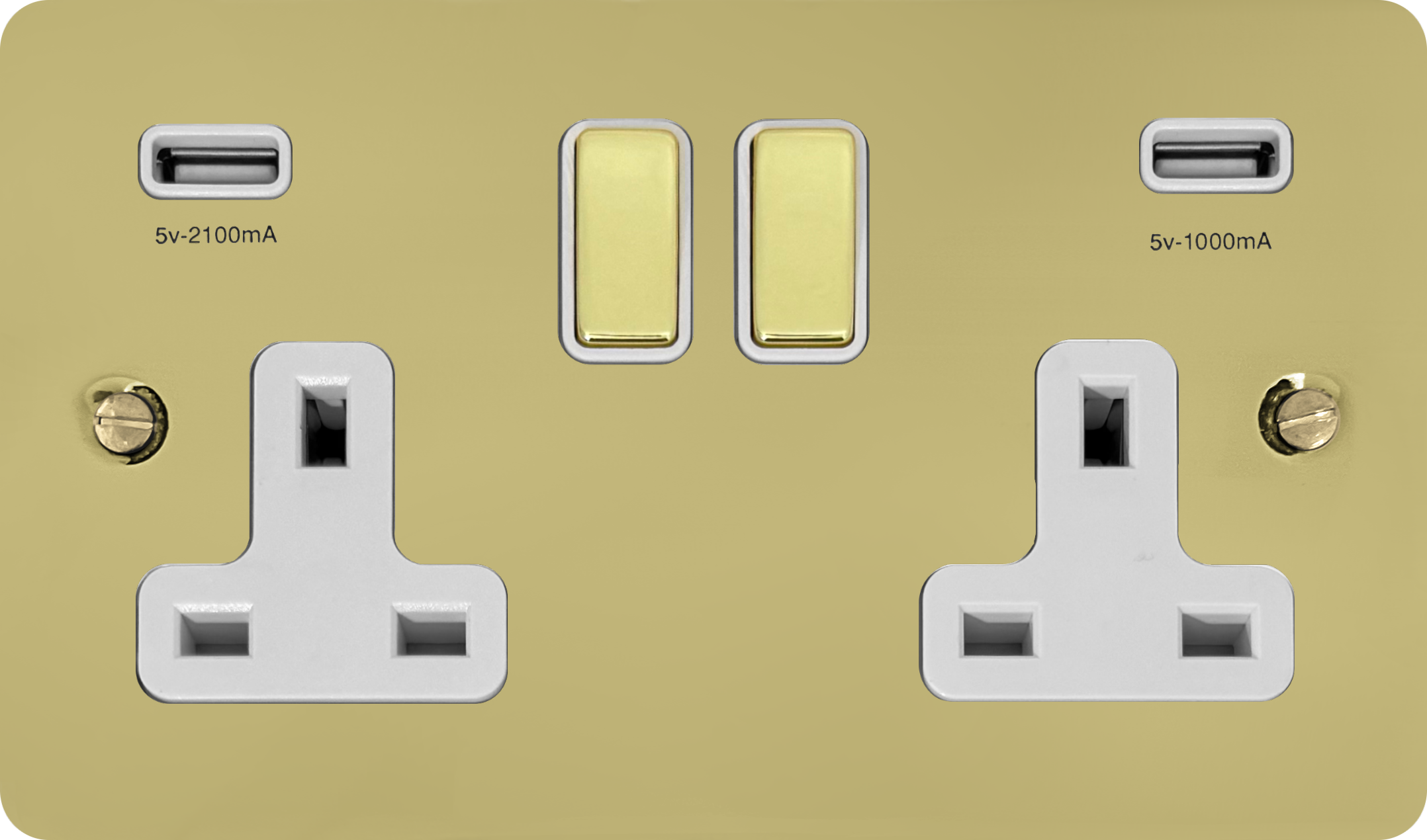 Flat Polished Brass Unlacquered Double Socket with USB (Brass Switches) - G+H FBUL2910