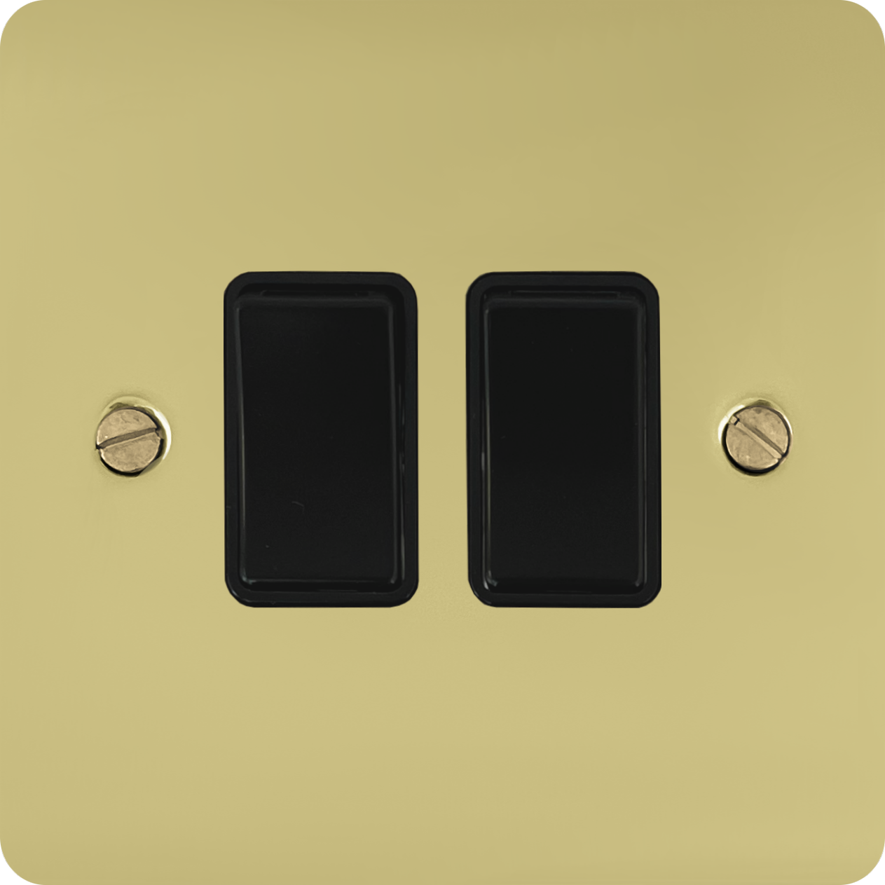 Flat Polished Brass Unlacquered Light Switch (2 Gang/Black Switches) - G+H FBUL2B