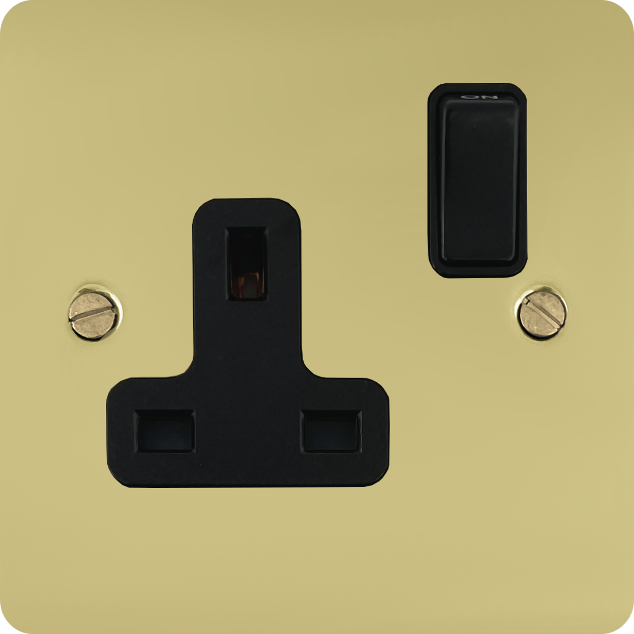 Flat Polished Brass Unlacquered Single Socket (Black Switch) - G+H FBUL9B