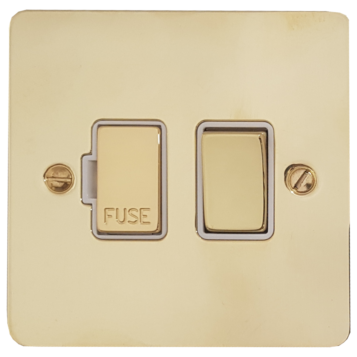Flat Polished Brass Unlacquered Switched Fused Spur (Brass Switch/White Inserts) - G+H FBUL257