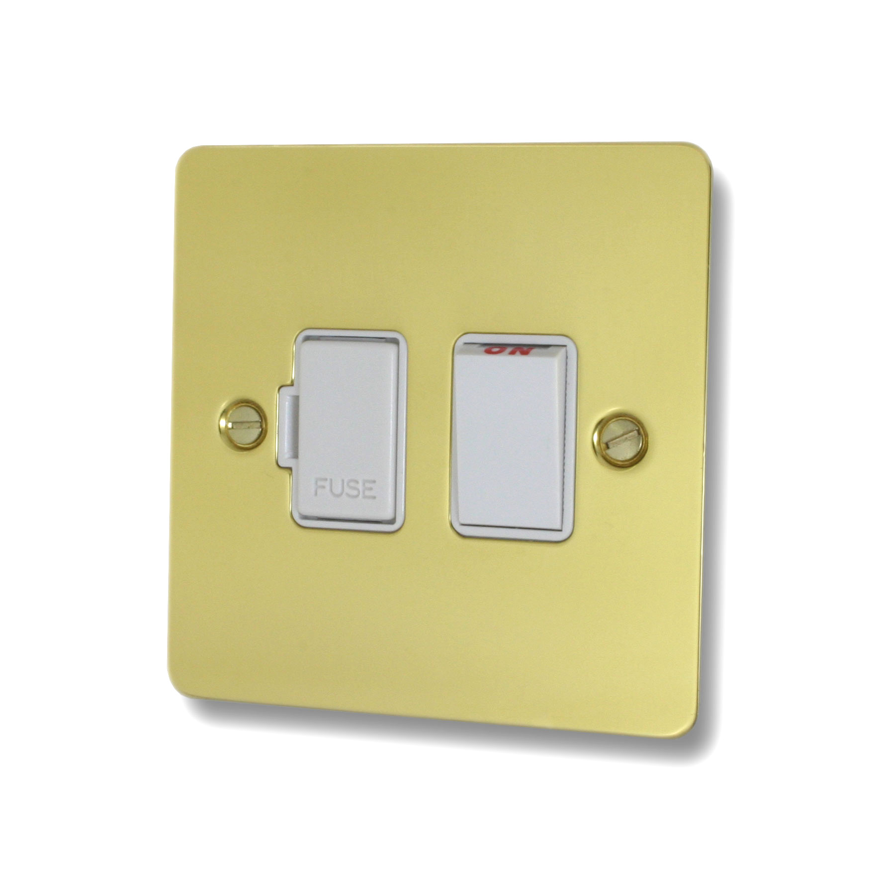 Flat Polished Brass Unlacquered Switched Fused Spur (White Switch) - G+H FBUL57W