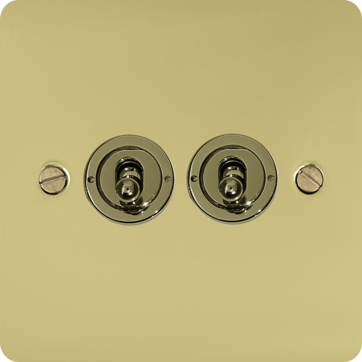 Flat Polished Brass Unlacquered Toggle Switch (2 Gang)