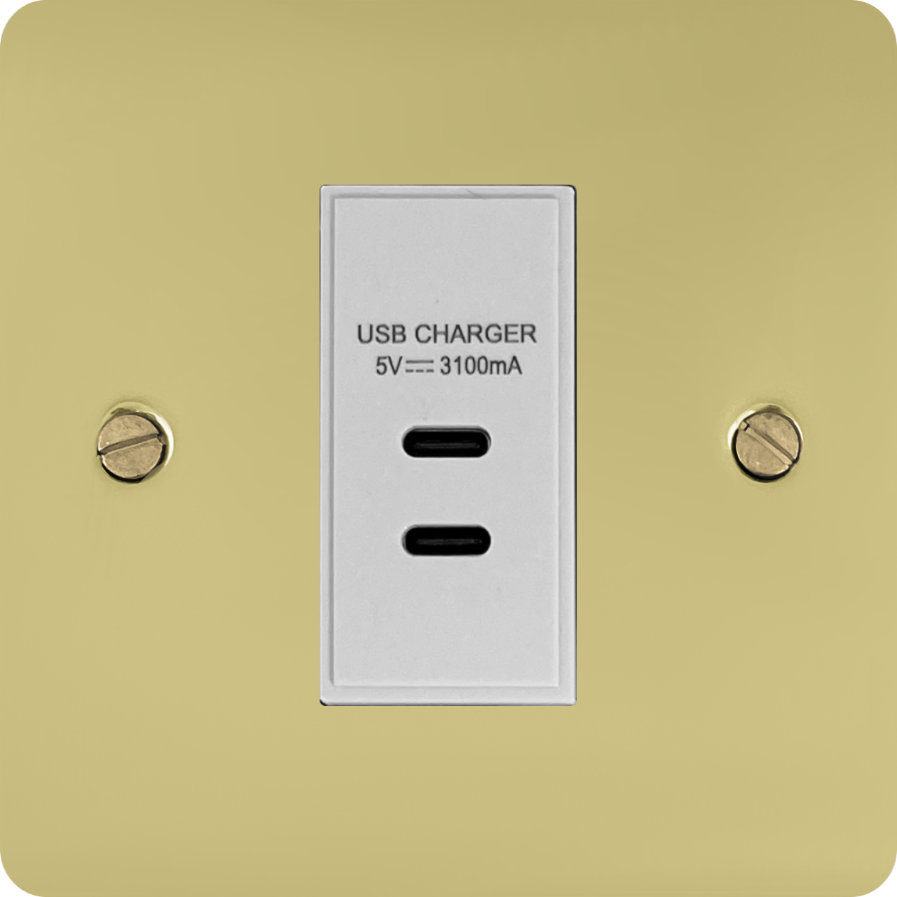 Flat Polished Brass Unlacquered USB Charger (2x USB-C) (1 Gang/White Insert) - G+H FBUL42W